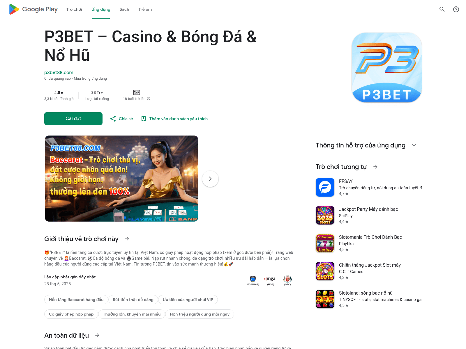 The site displays a page titled “P3BET”, which may be designed to impersonate Google.