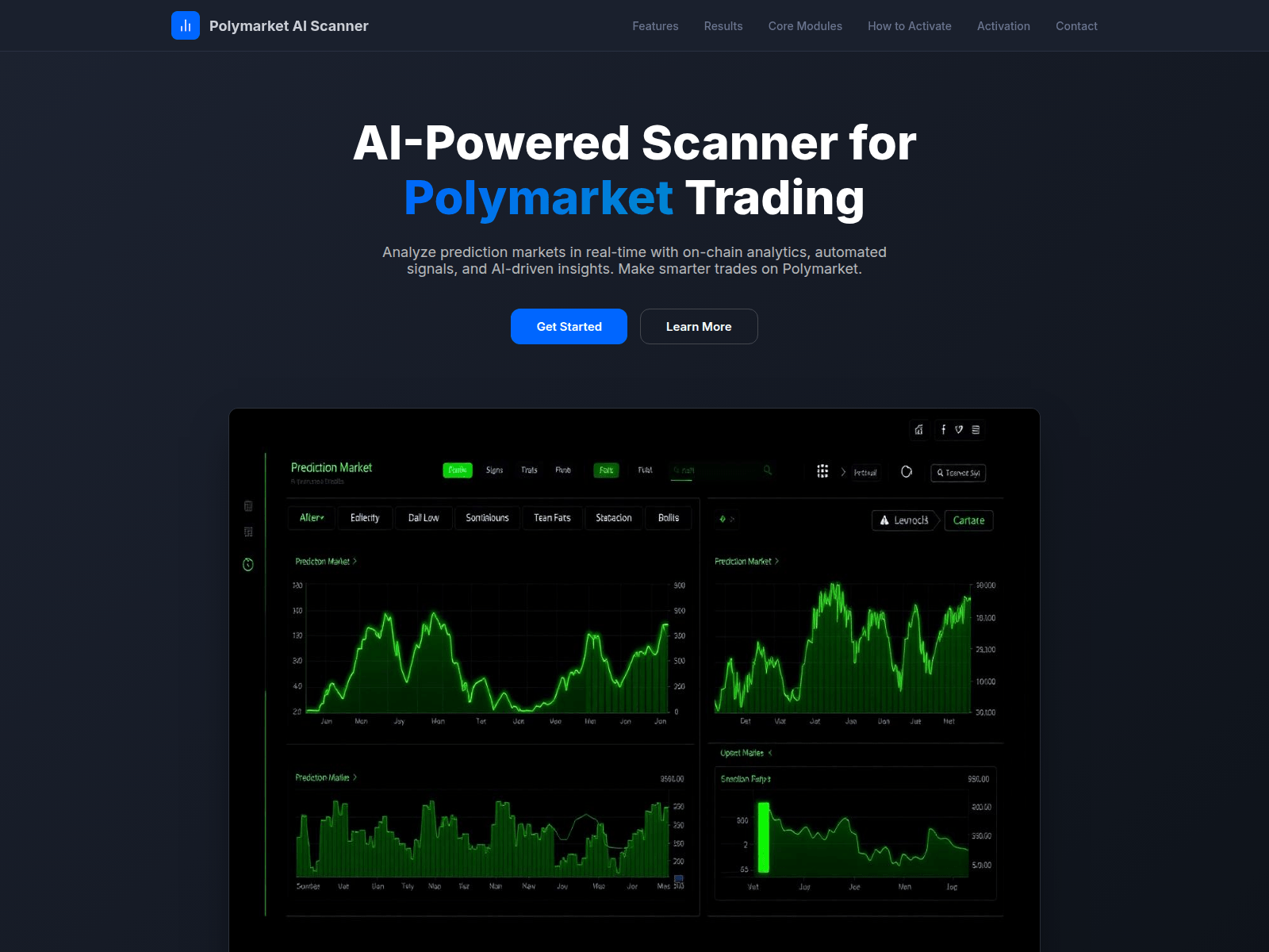The site displays a page titled “Polymarket AI Scanner”.