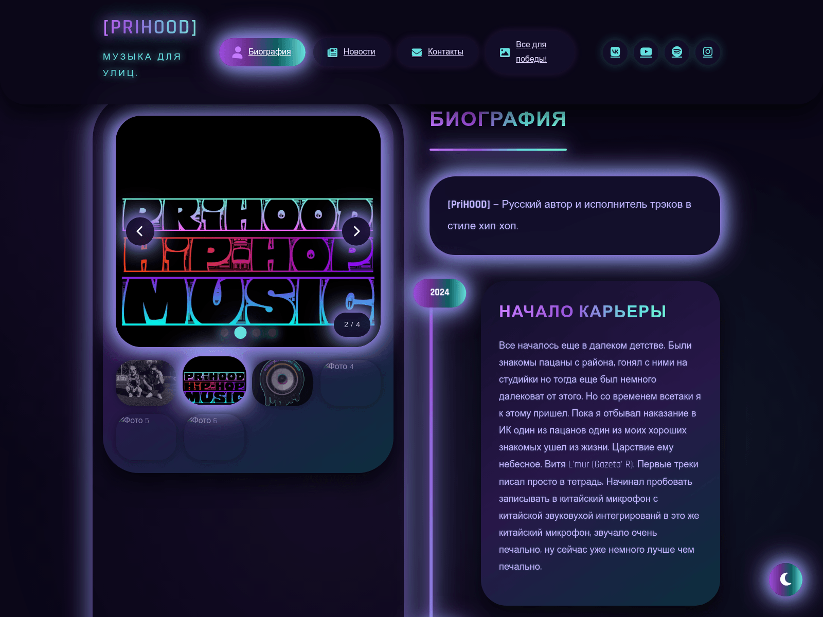The site displays a page titled “[PriHOOD] | Официальный сайт”.