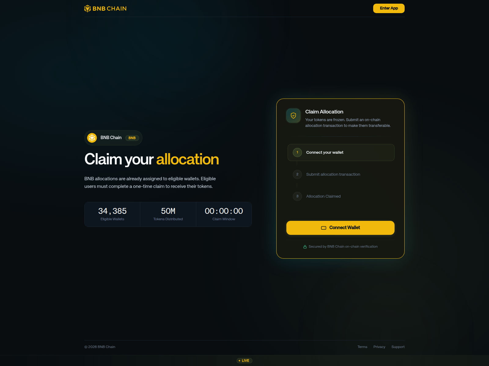 The site displays a page titled “BNB Chain - Claim Your Allocation”.
