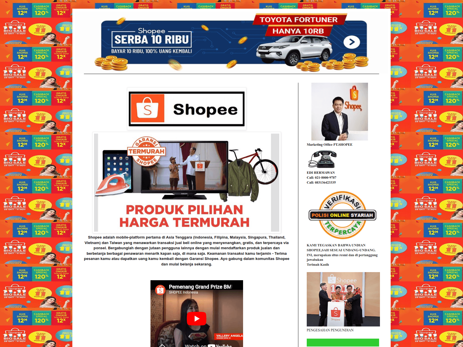 The site displays a page titled “shopee”.