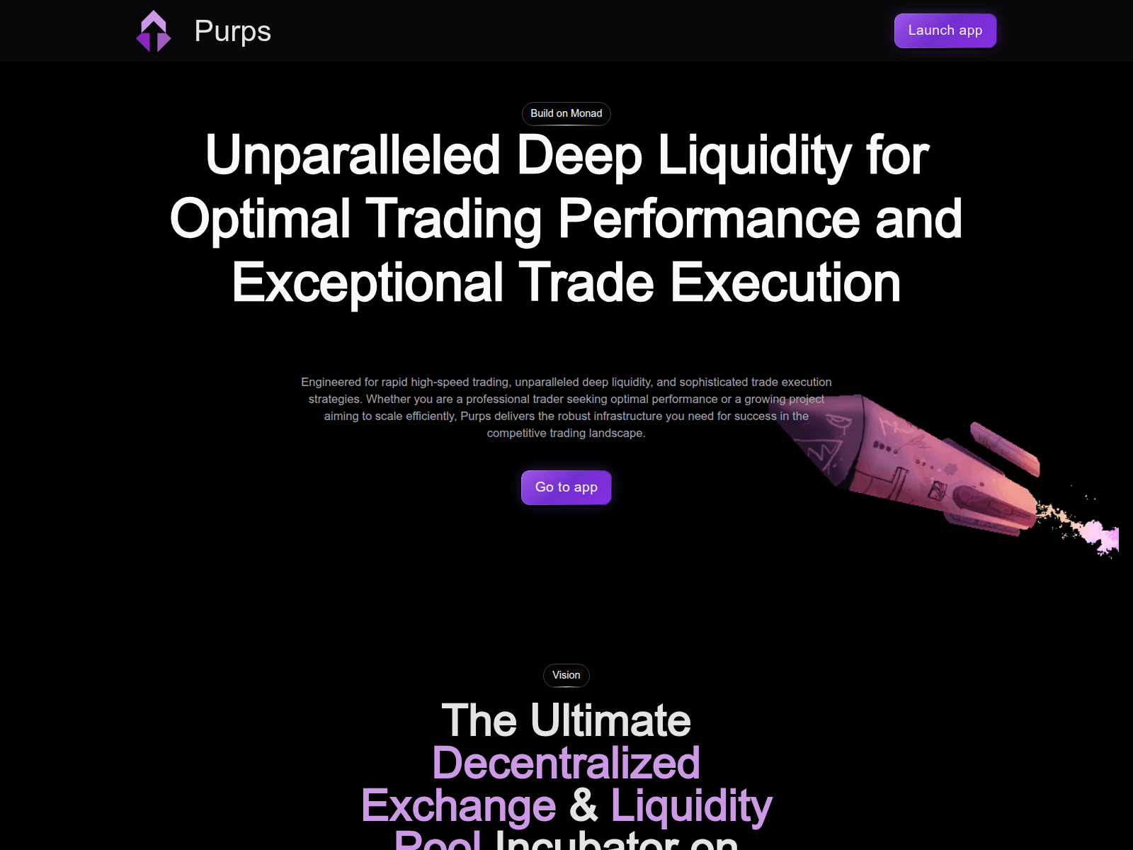 The site displays a page titled “PURPS DEX - DEX Solution Trade Perpetuals Effortlessly on Purps”.