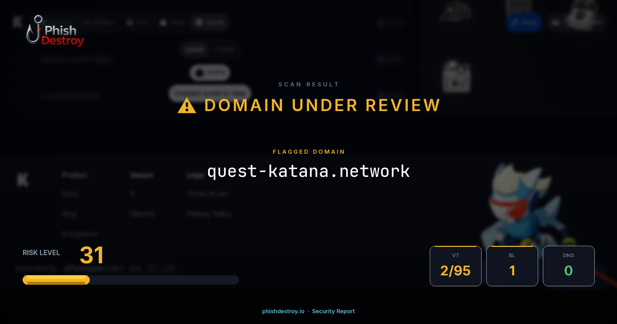 quest-katana.network has been flagged by 2 security vendors as of March 15, 2026.