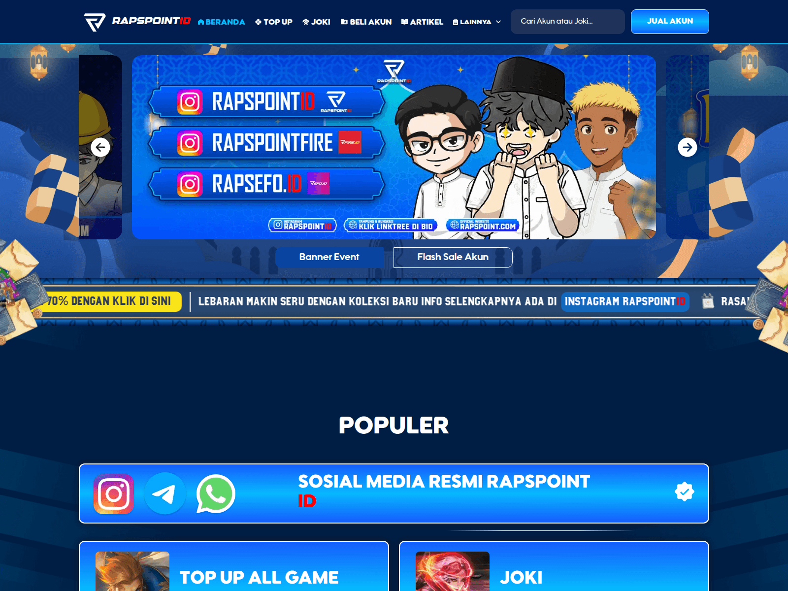 The site displays a page titled “RAPSPOINT ID - JUAL BELI AKUN ML, JOKI & TOP UP TERPERCAYA JURAGAN”.