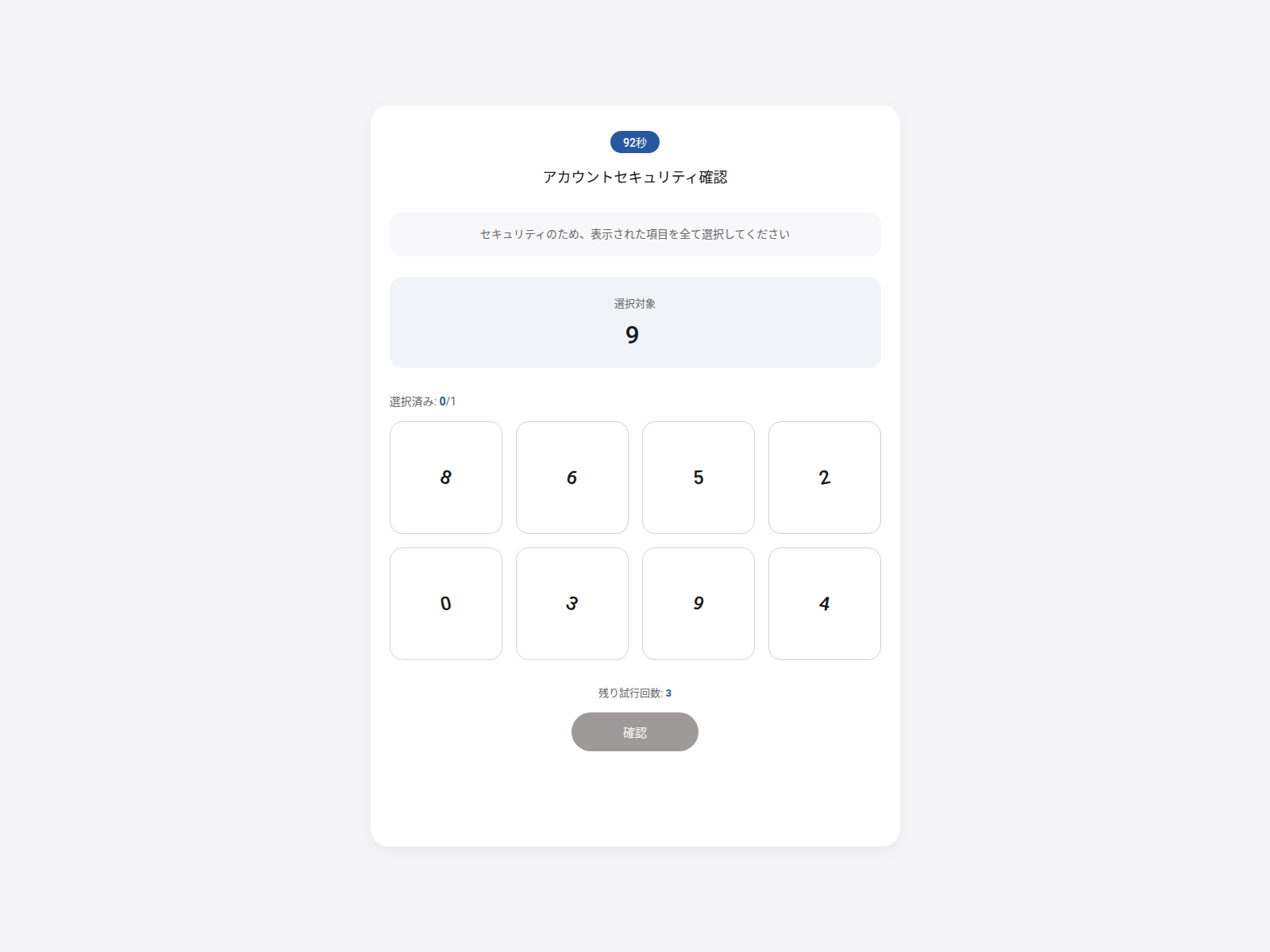 The site displays a page titled “アカウントセキュリティ確認”.