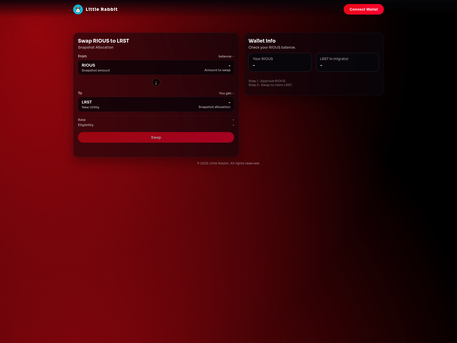 The site displays a page titled “Little Rabbit Dapp - RIOUS → LRST”.