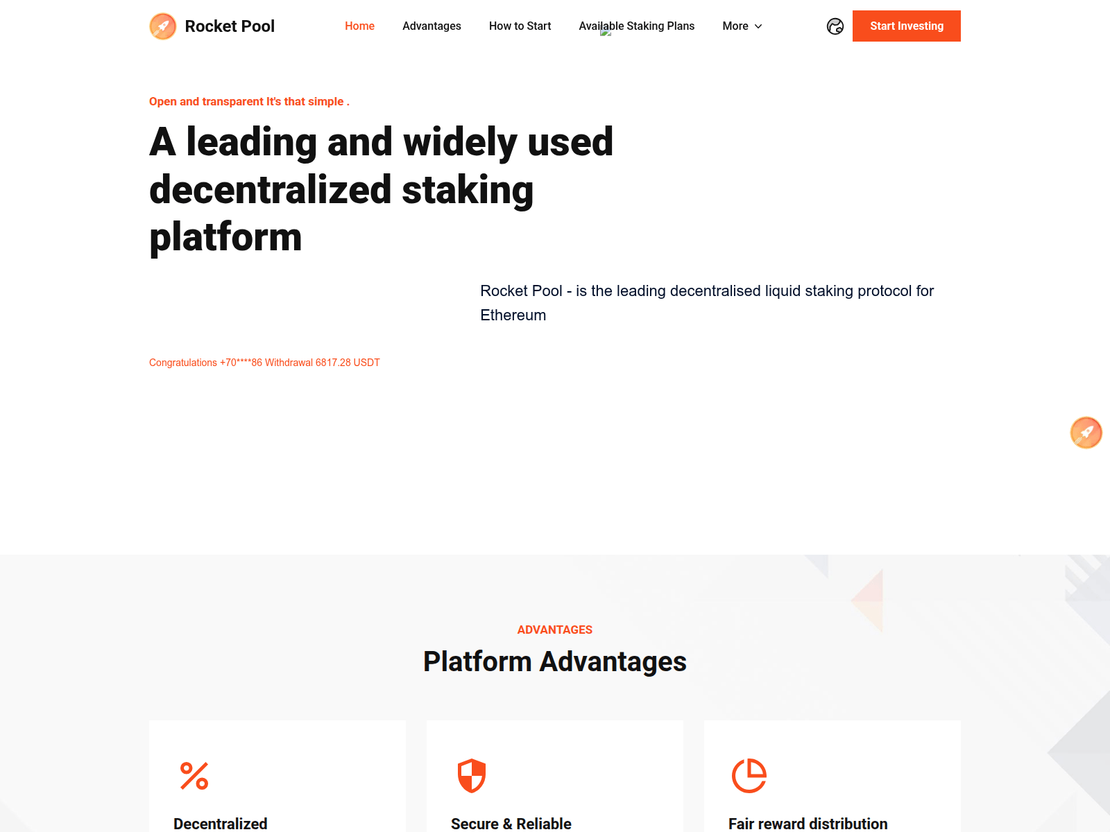 The site displays a page titled “Rocket Pool”, which may be designed to impersonate rocket pool.