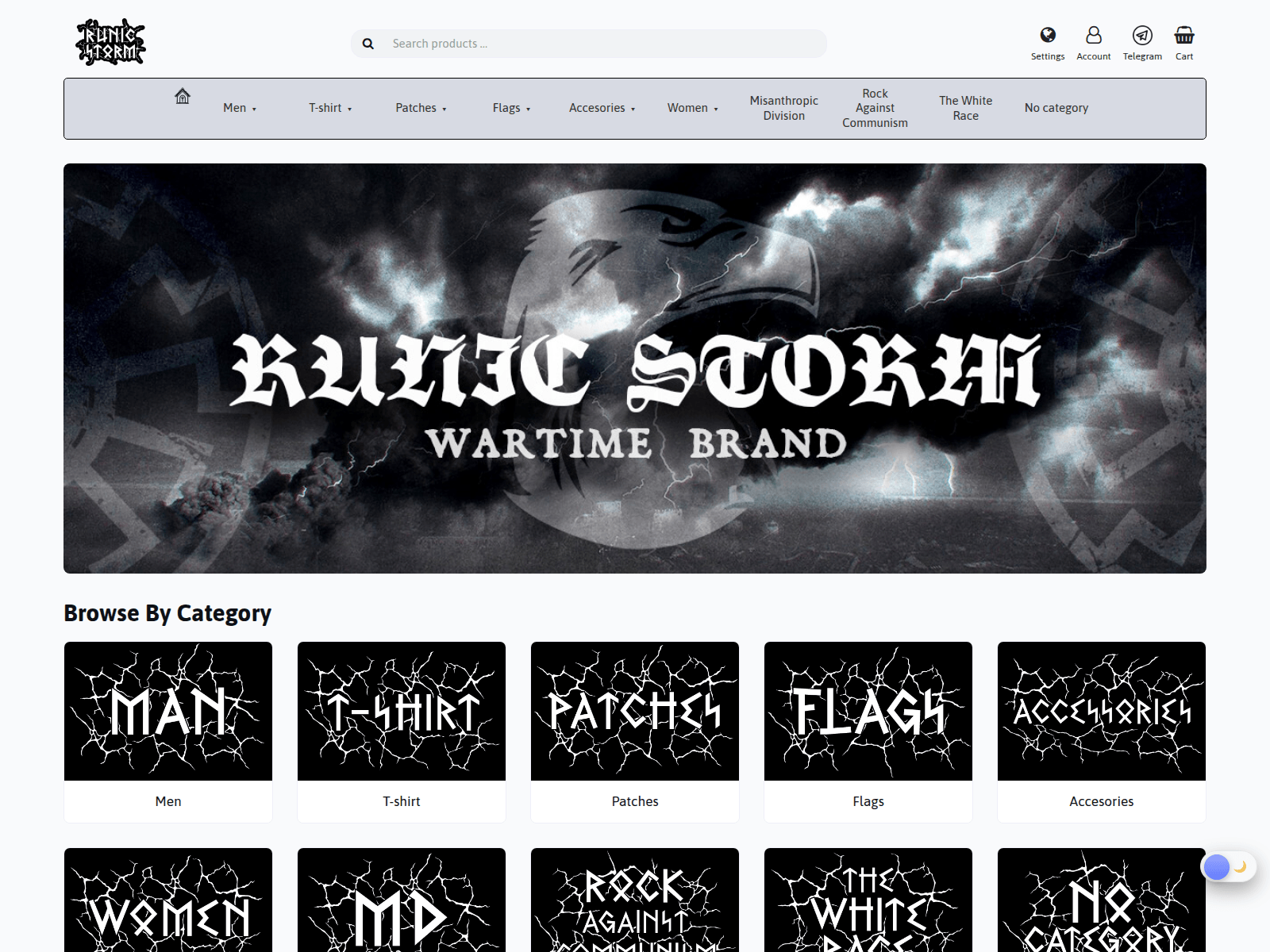 The site displays a page titled “Runic Storm | Online Store”.