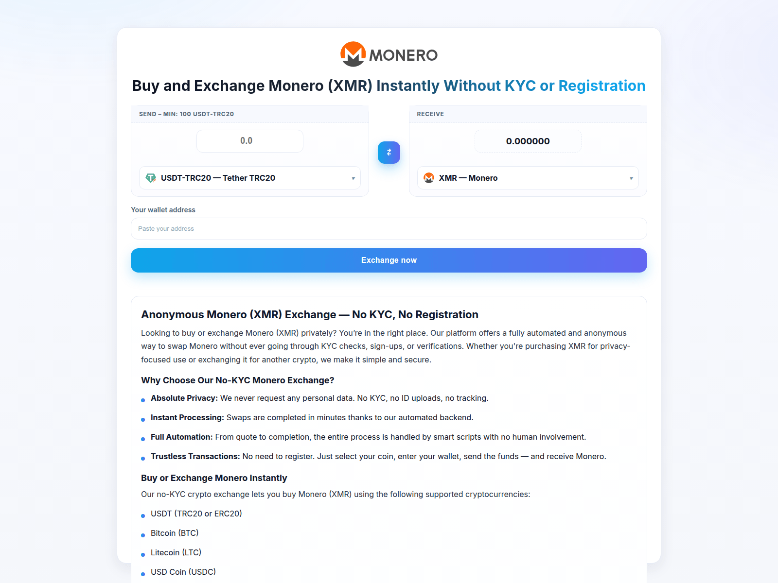 “Buy and Exchange Monero (XMR) Anonymously — No KYC or Registration”