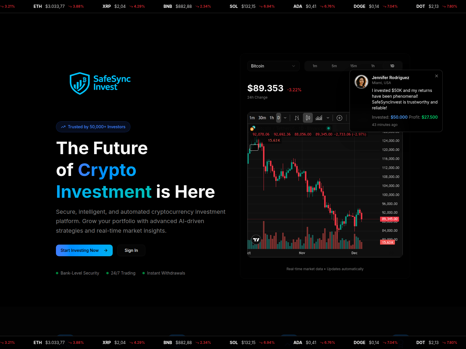 The site displays a page titled “SafeSyncInvest - The Future of Crypto Investment”.