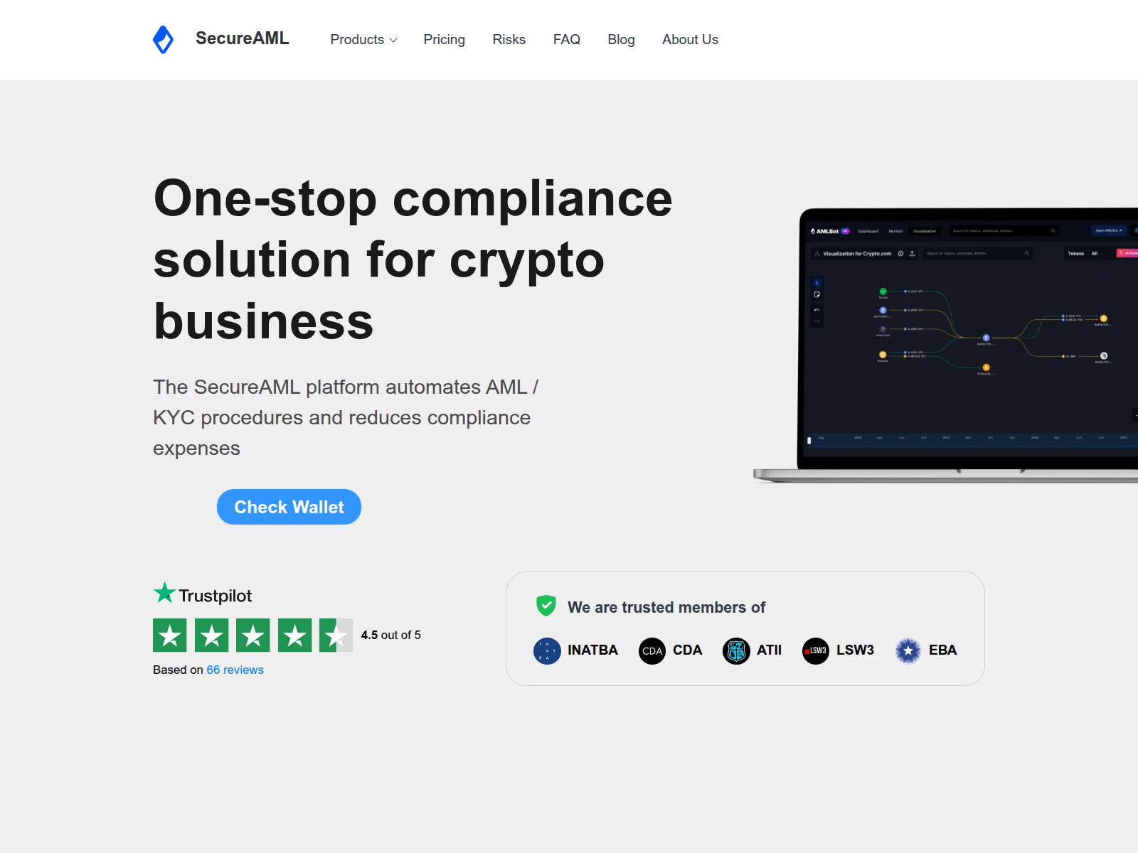 The site displays a page titled “AMLBot - The full-fledged crypto compliance solution”, which may be designed to impersonate AMLBot.