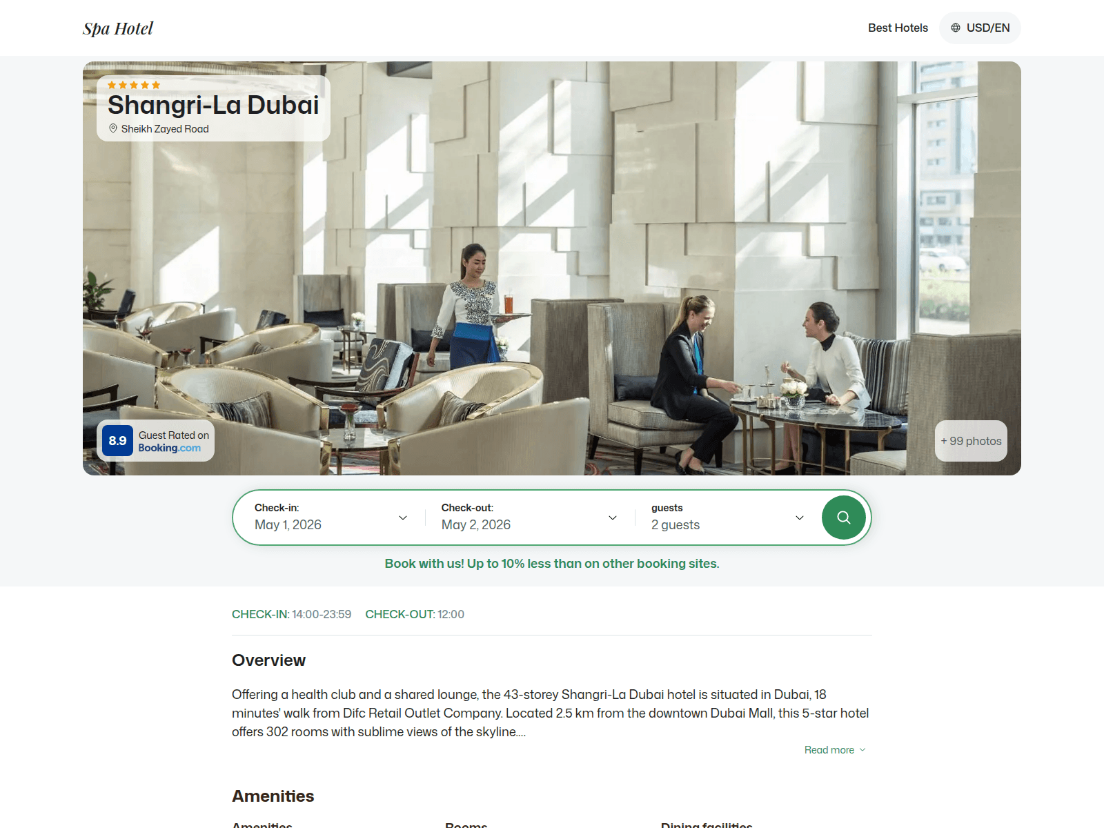 The site displays a page titled “Shangri-La Dubai - Dubai, United Arab Emirates”.