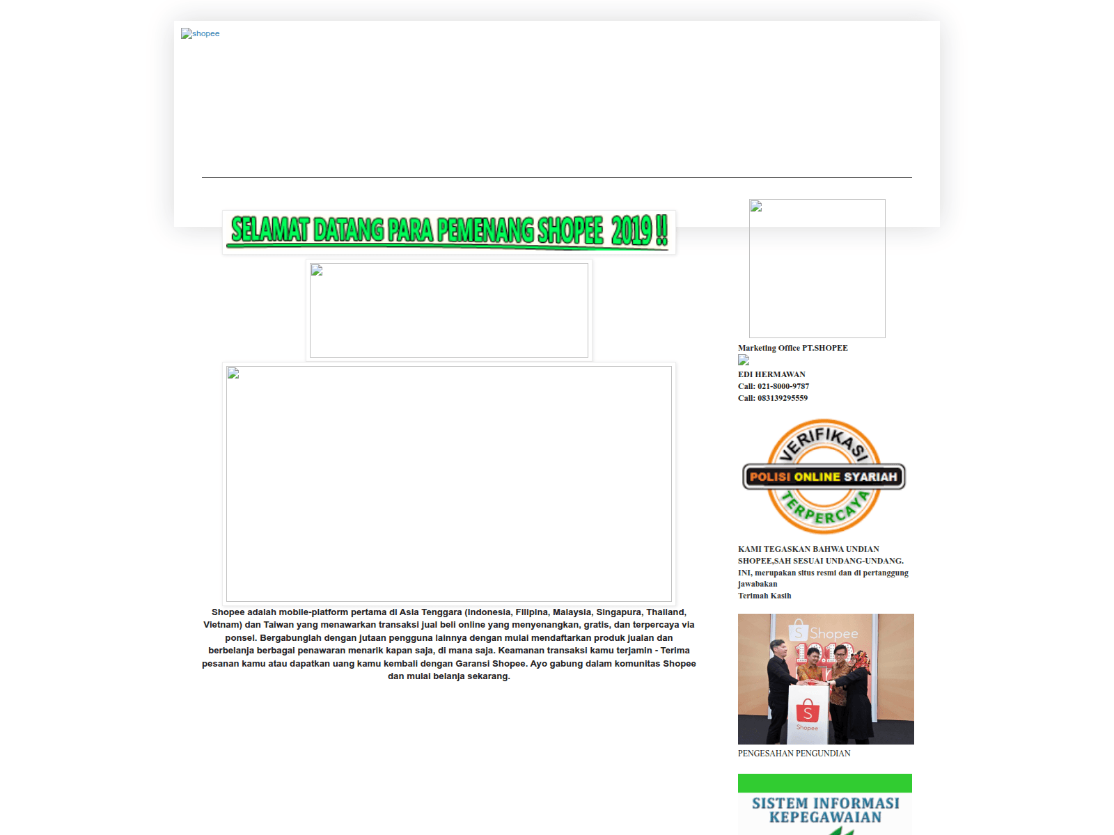 The site displays a page titled “shopee”.