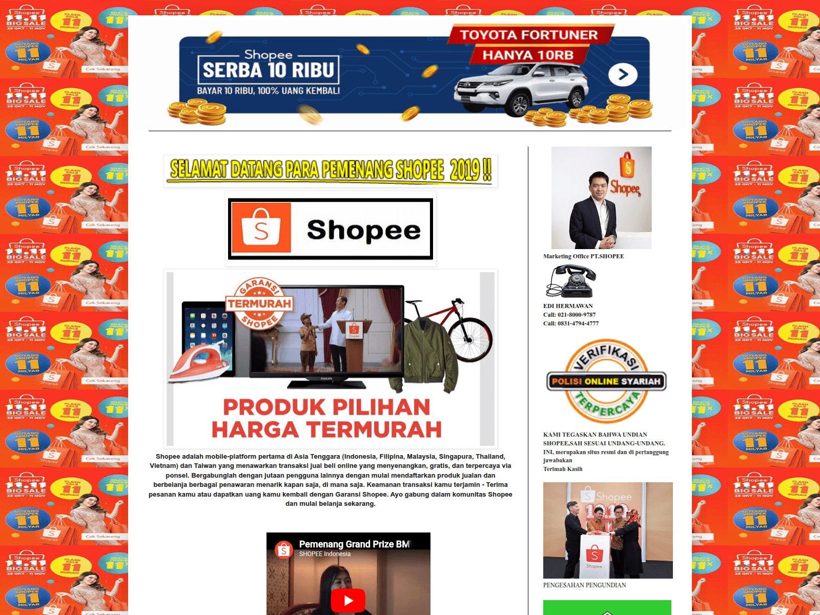 The site displays a page titled “SHOPEE”.