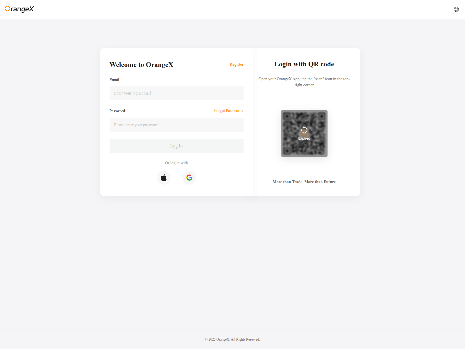 The site displays a page titled “OrangeX Account:Log In | Sign in”.