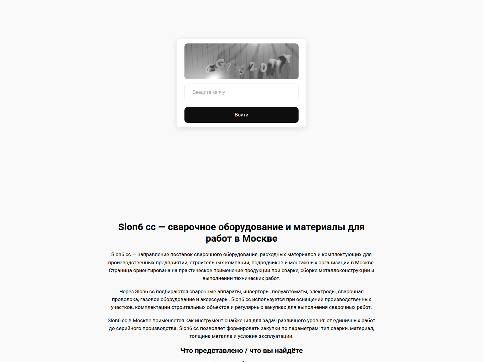 The site displays a page titled “Slon6 cc — сварочное оборудование и материалы для производства в Москве”.