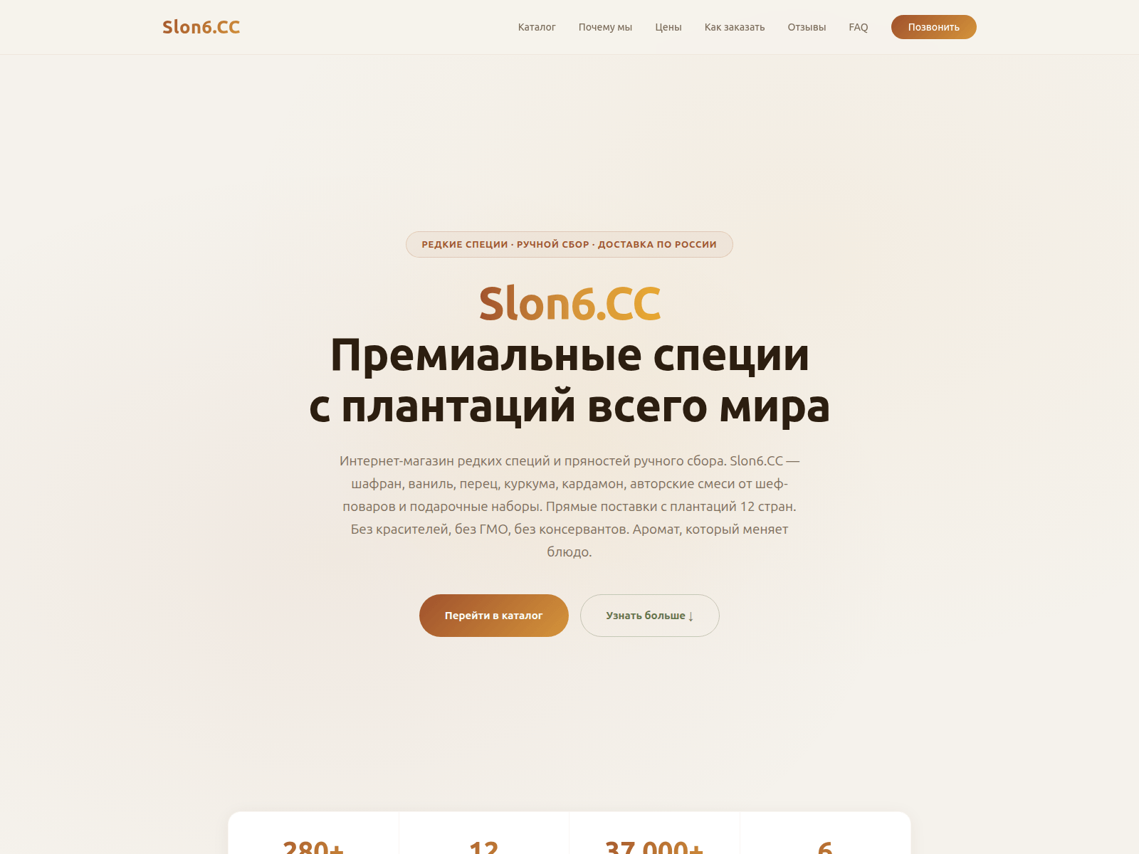 The site displays a page titled “Slon6.CC — интернет-магазин премиальных специй и пряносÑ...”.