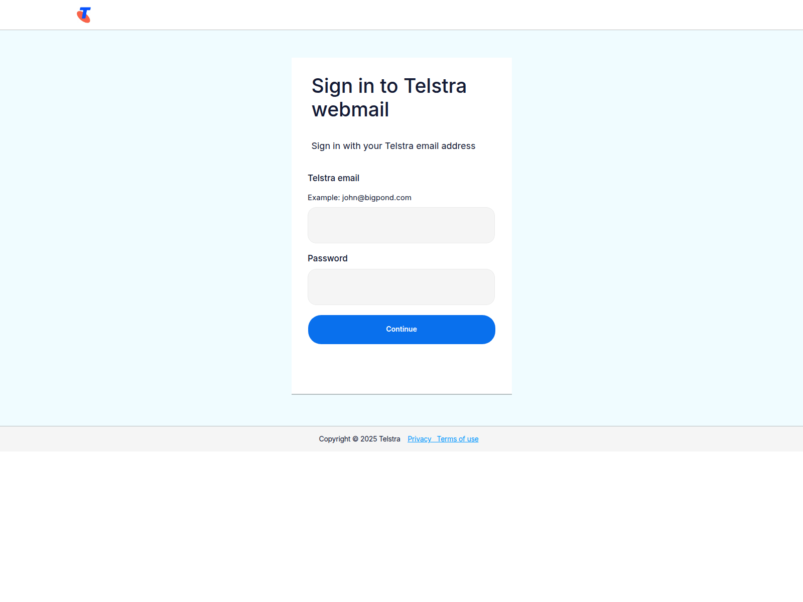 The site displays a page titled “Sign in with your Telstra ID”, which may be designed to impersonate Telstra.
