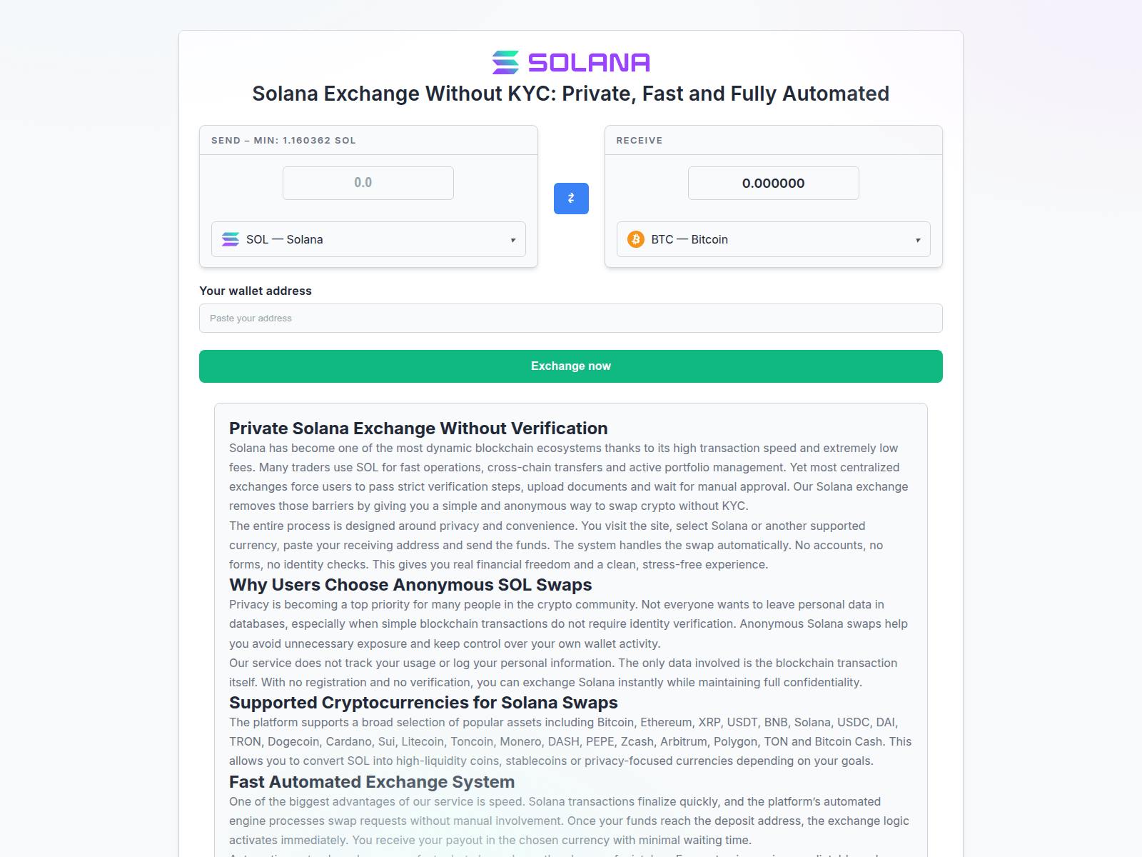 “Solana Crypto Exchange Without KYC - Fast Anonymous Swaps”