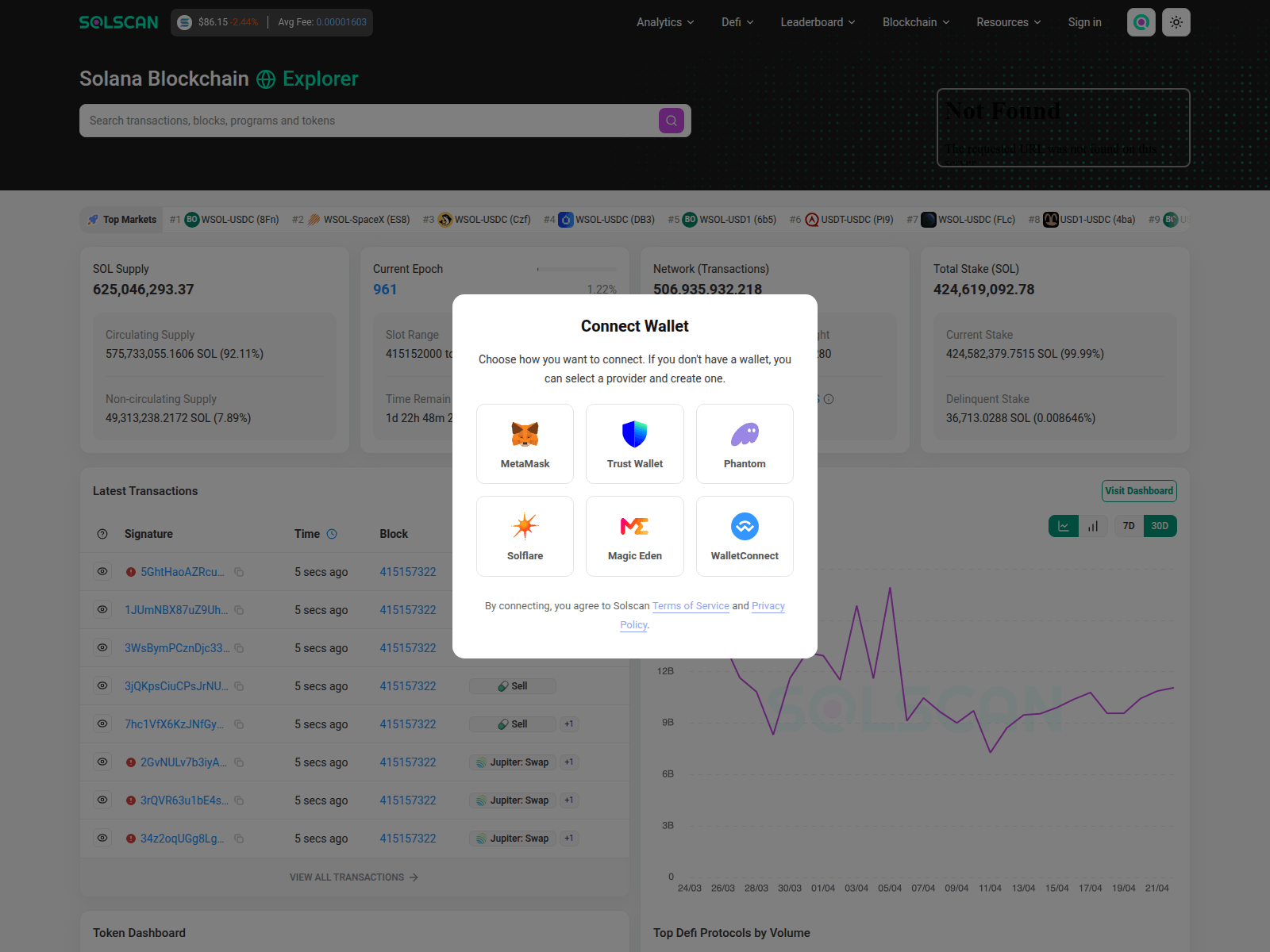 The site displays a page titled “Solana (SOL) Blockchain Explorer”.