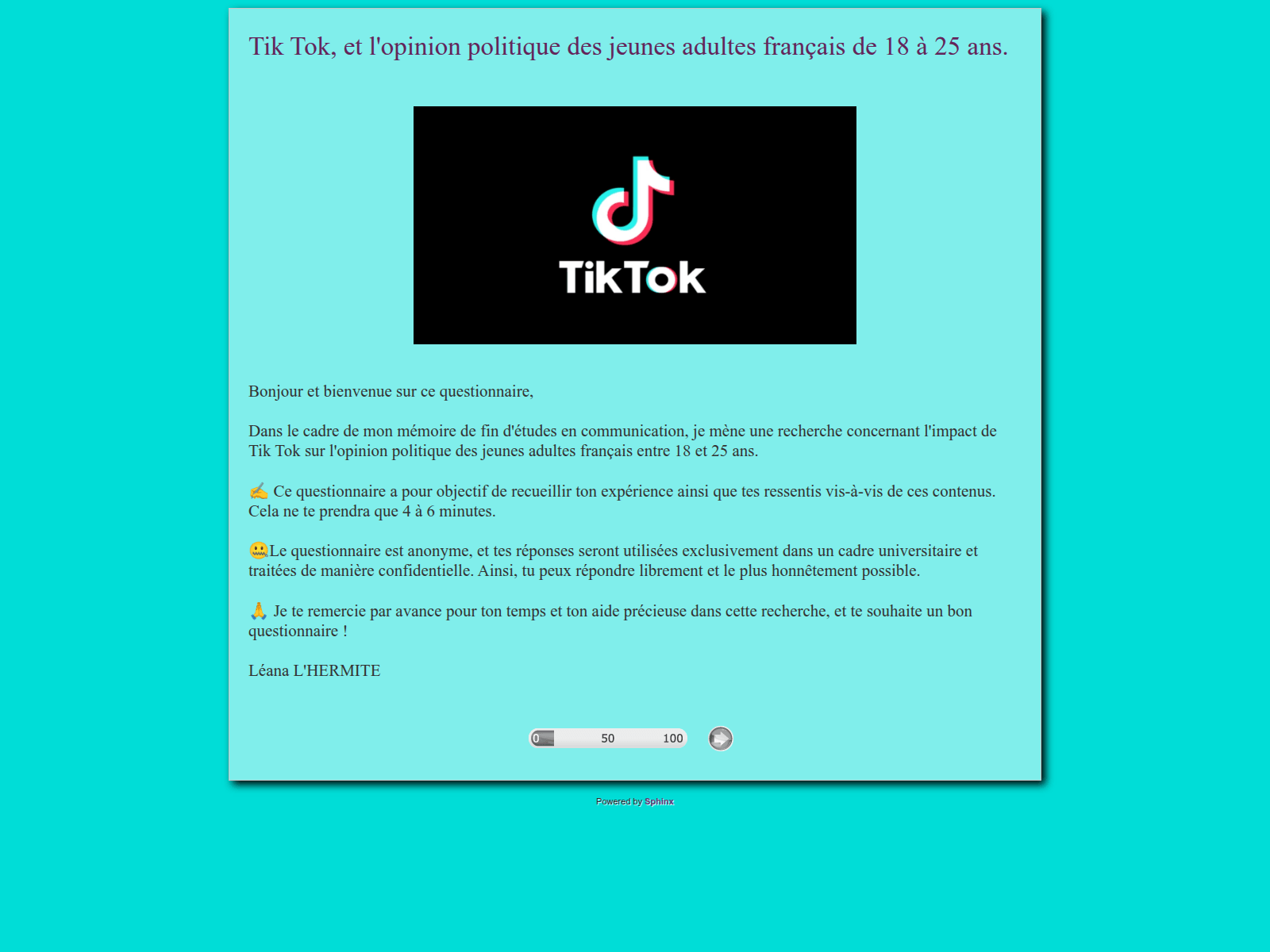 The site displays a page titled “La politique sur Tik Tok Étape 1 sur 6”.