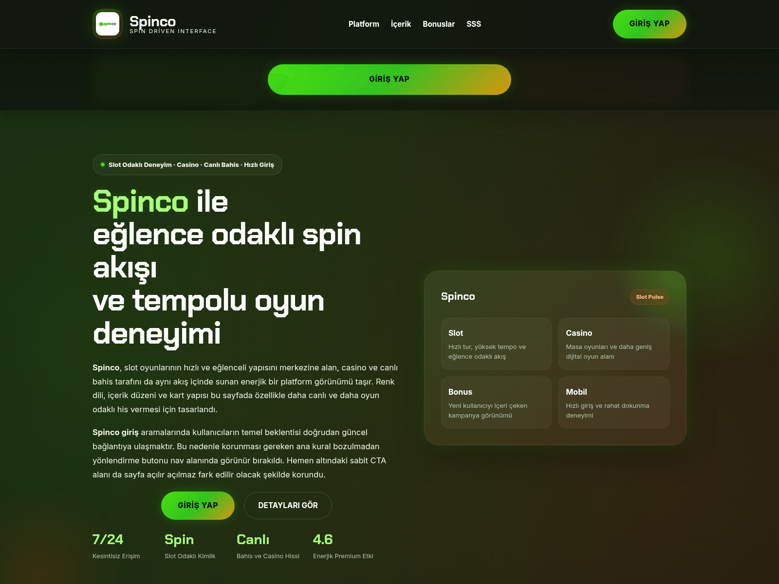 “Spinco Giriş | Güncel Adres, Casino, Slot ve Canlı Bahis Deneyimi”