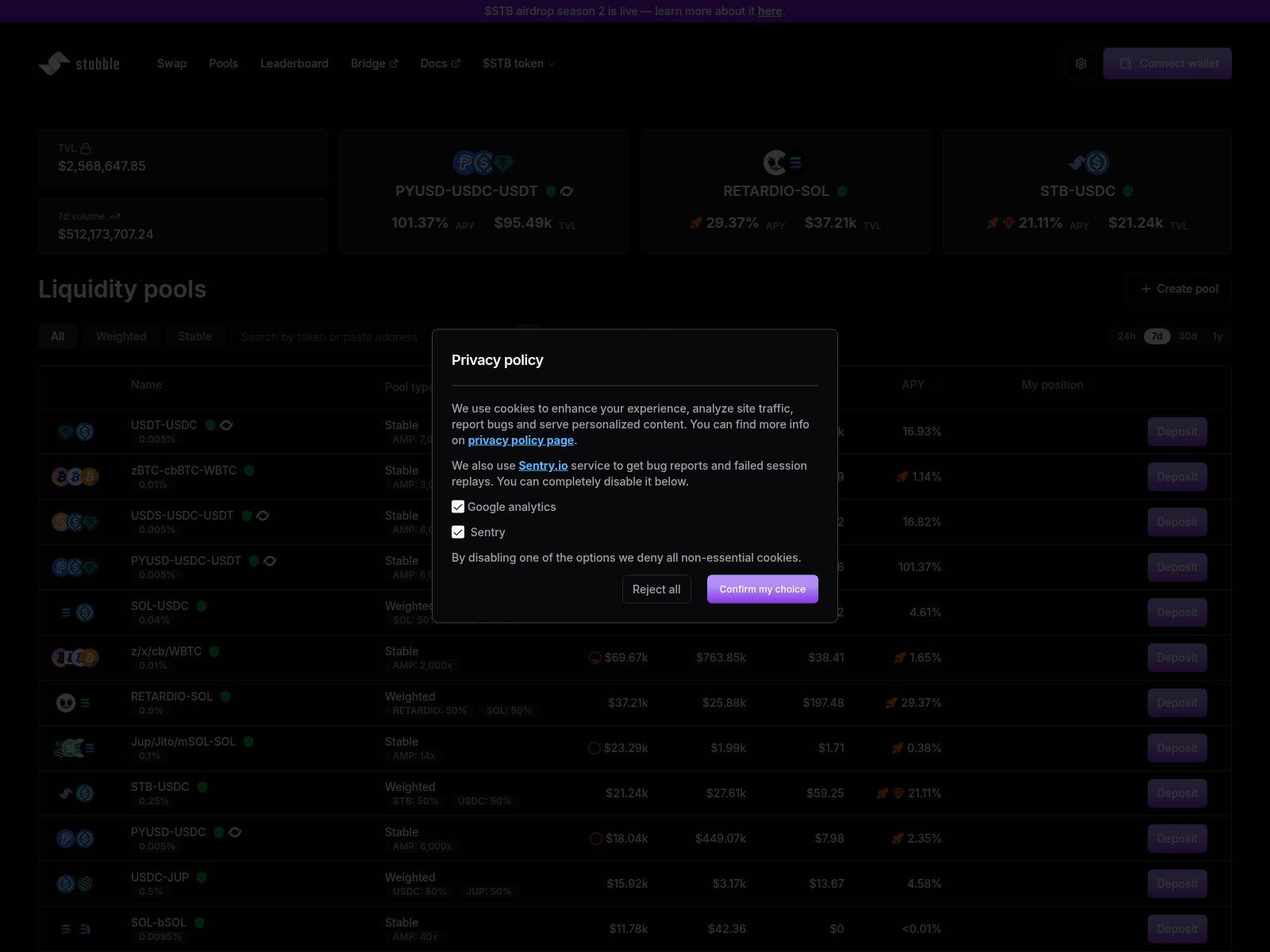 The site displays a page titled “Liquidity pools | stabble”, which may be designed to impersonate google.
