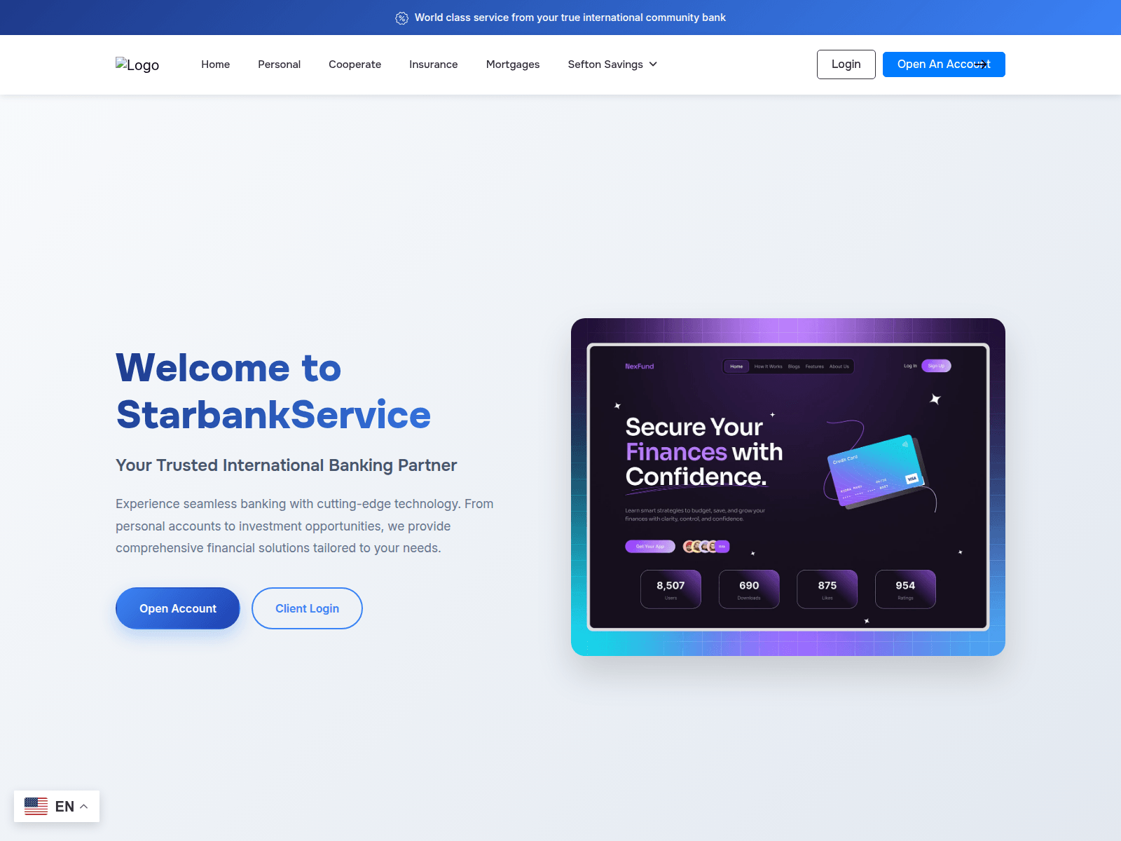 The site displays a page titled “StarbankService- Your New Favorite Bank”.