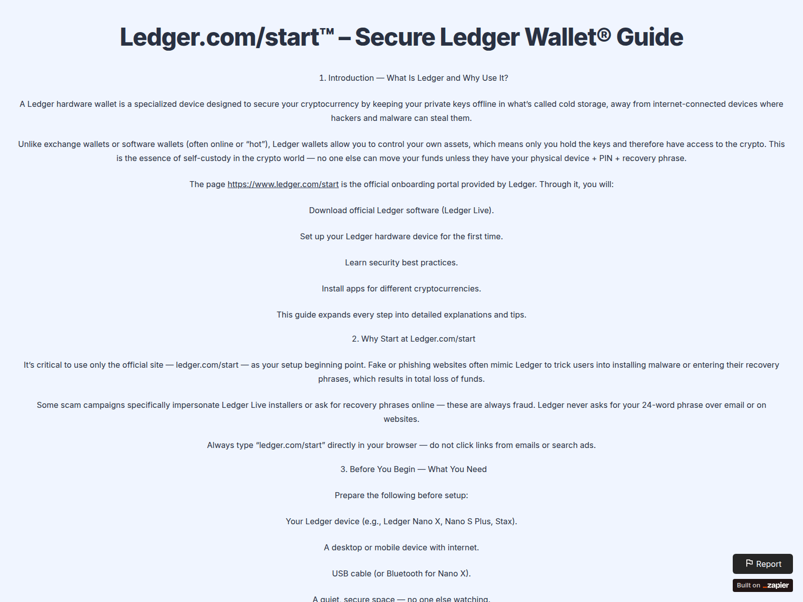 • All URLs & domains used by the scammer (including startcom-ledgo.zapier.app)