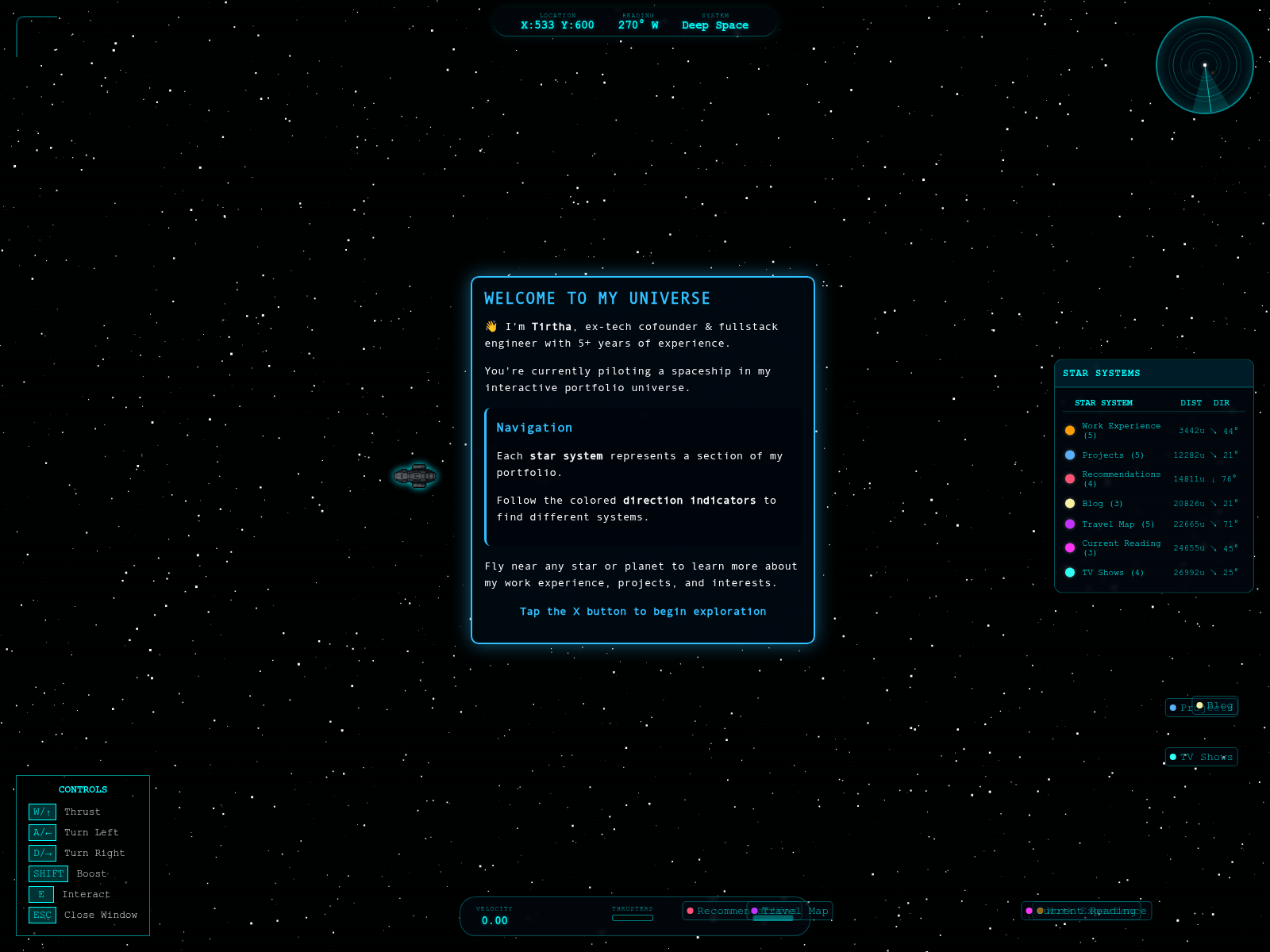 The site displays a page titled “Tirtha | Fullstack Engineer & Tech Leader Portfolio”.