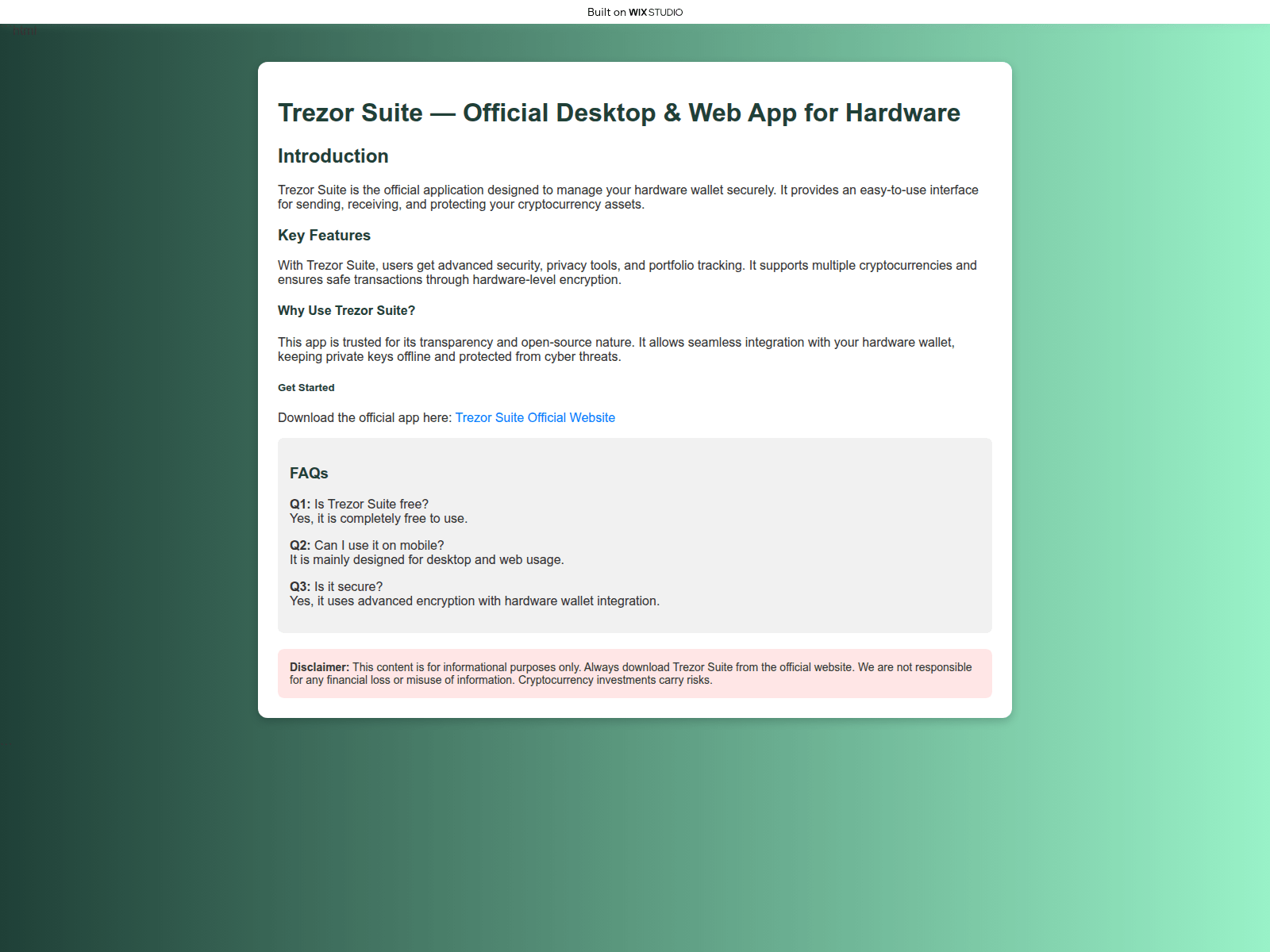suitesapps-trezo.wixstudio.com has been listed on PhishDestroy as a suspicious domain. Scanned by 95 security vendors — automated detections may take time to update. PhishDestroy threat analysts continue to monitor this domain.