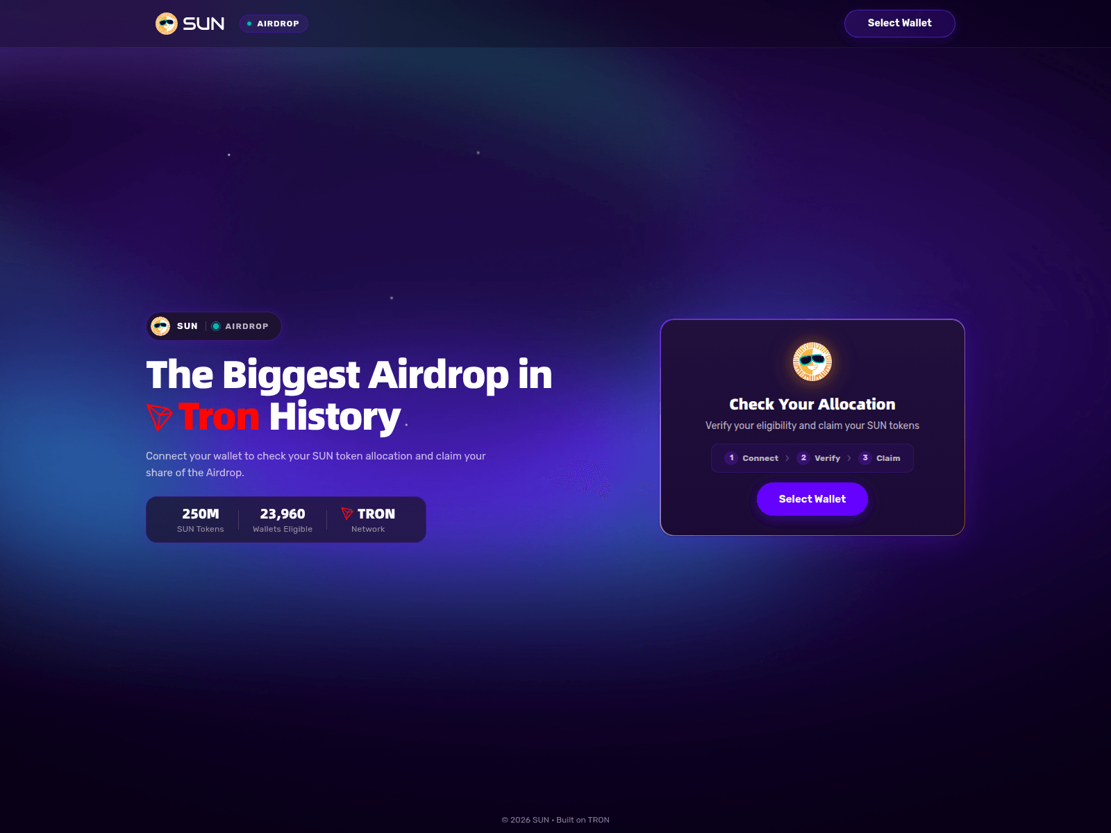 The site displays a page titled “SUN | Airdrop”, which may be designed to impersonate Airdrop Scam.