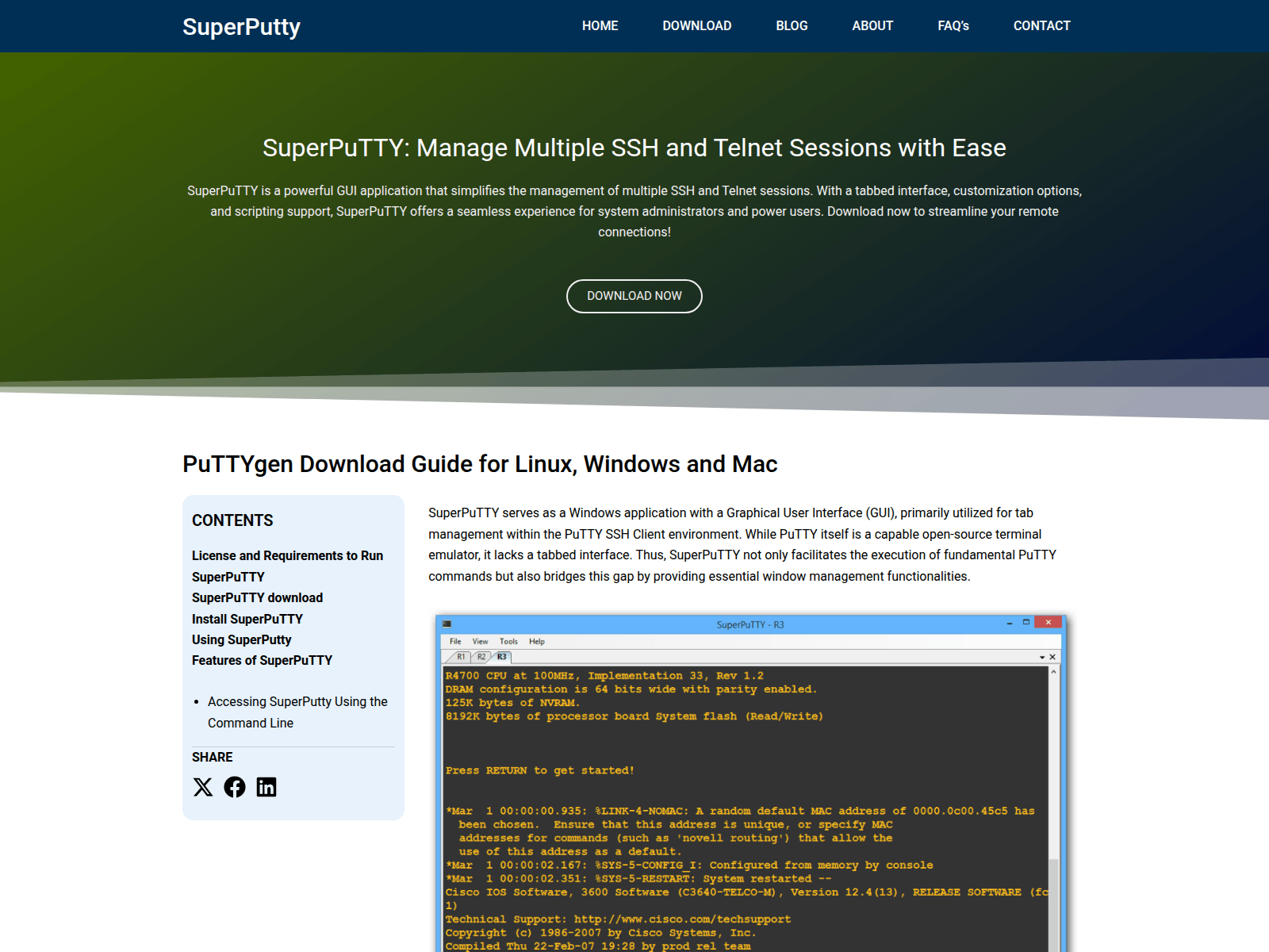 The site displays a page titled “SuperPuTTY - Window Manager for PuTTY Sessions”.