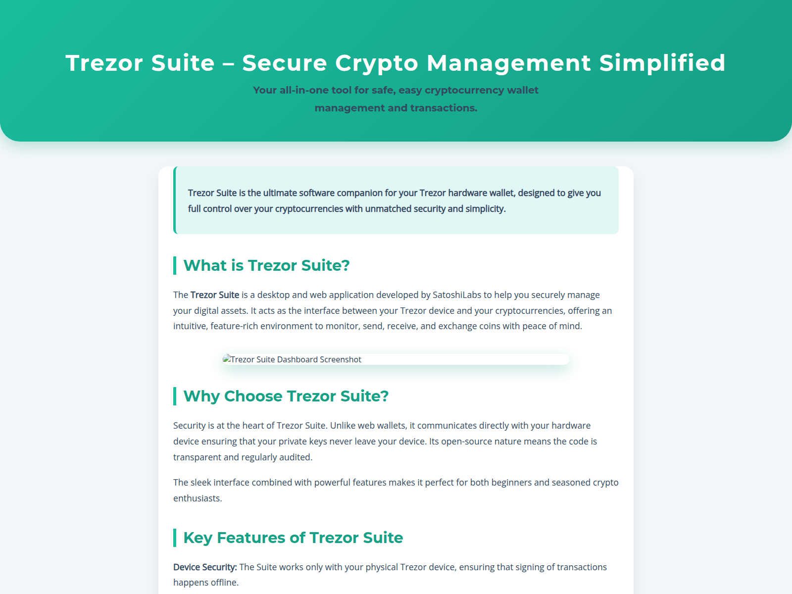 “Trezor Suite – Secure Crypto Management Simplified”