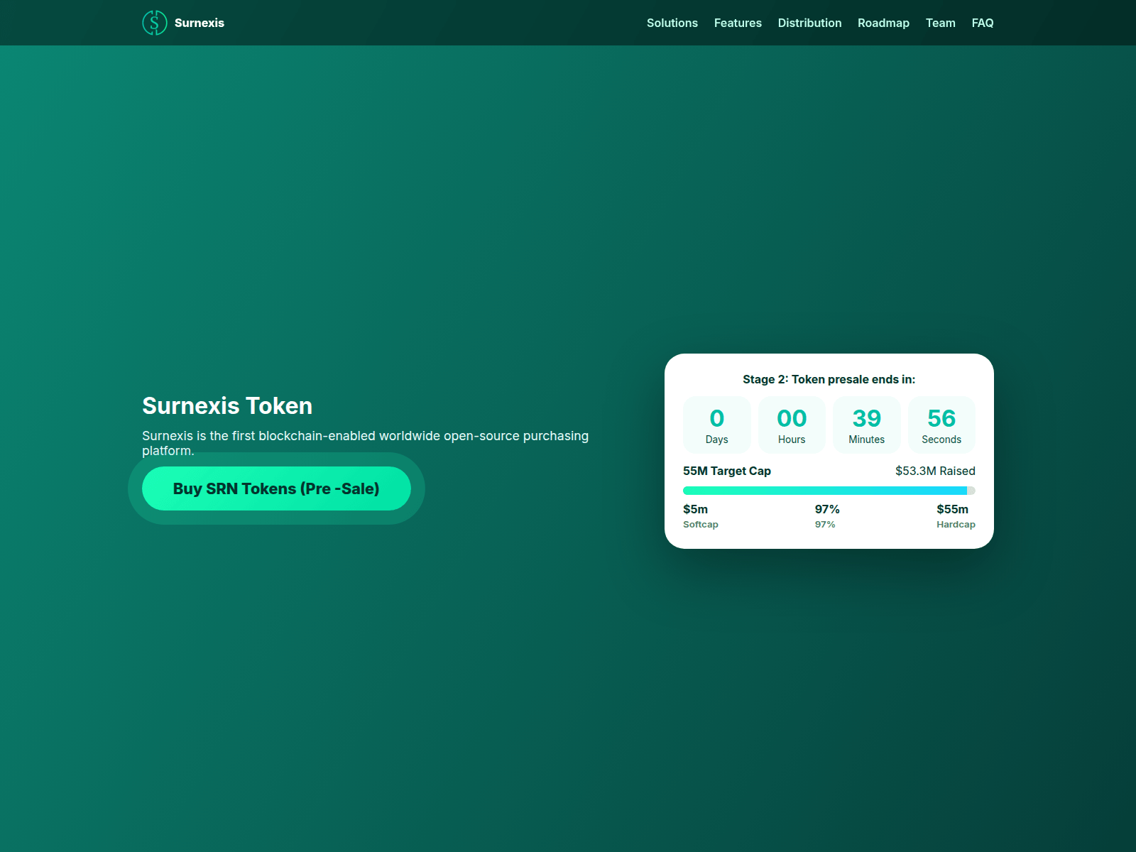 The site displays a page titled “Surnexis Token | Official Website – Secure Presale & High Bonus Rewards”.