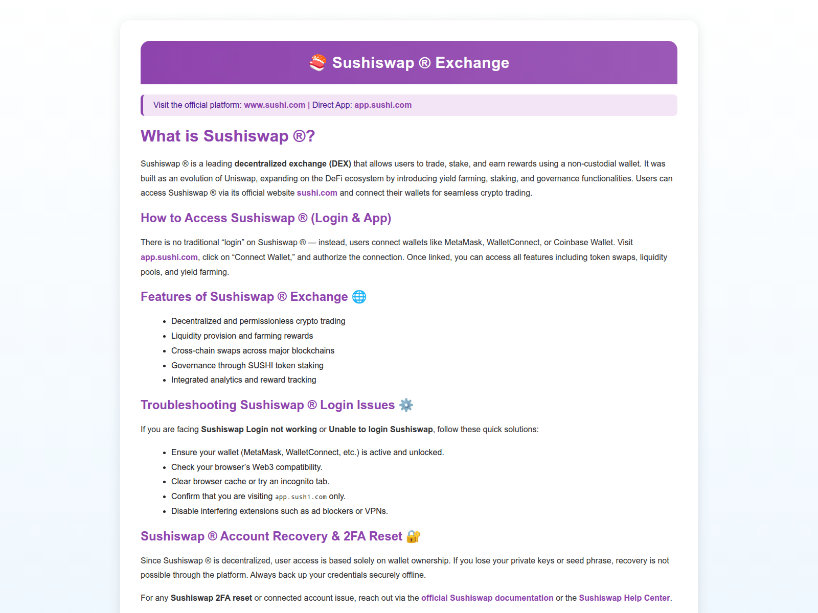 Domain Security & Threat Intelligence Report“Sushiswap ® Exchange — Login, Account Help”