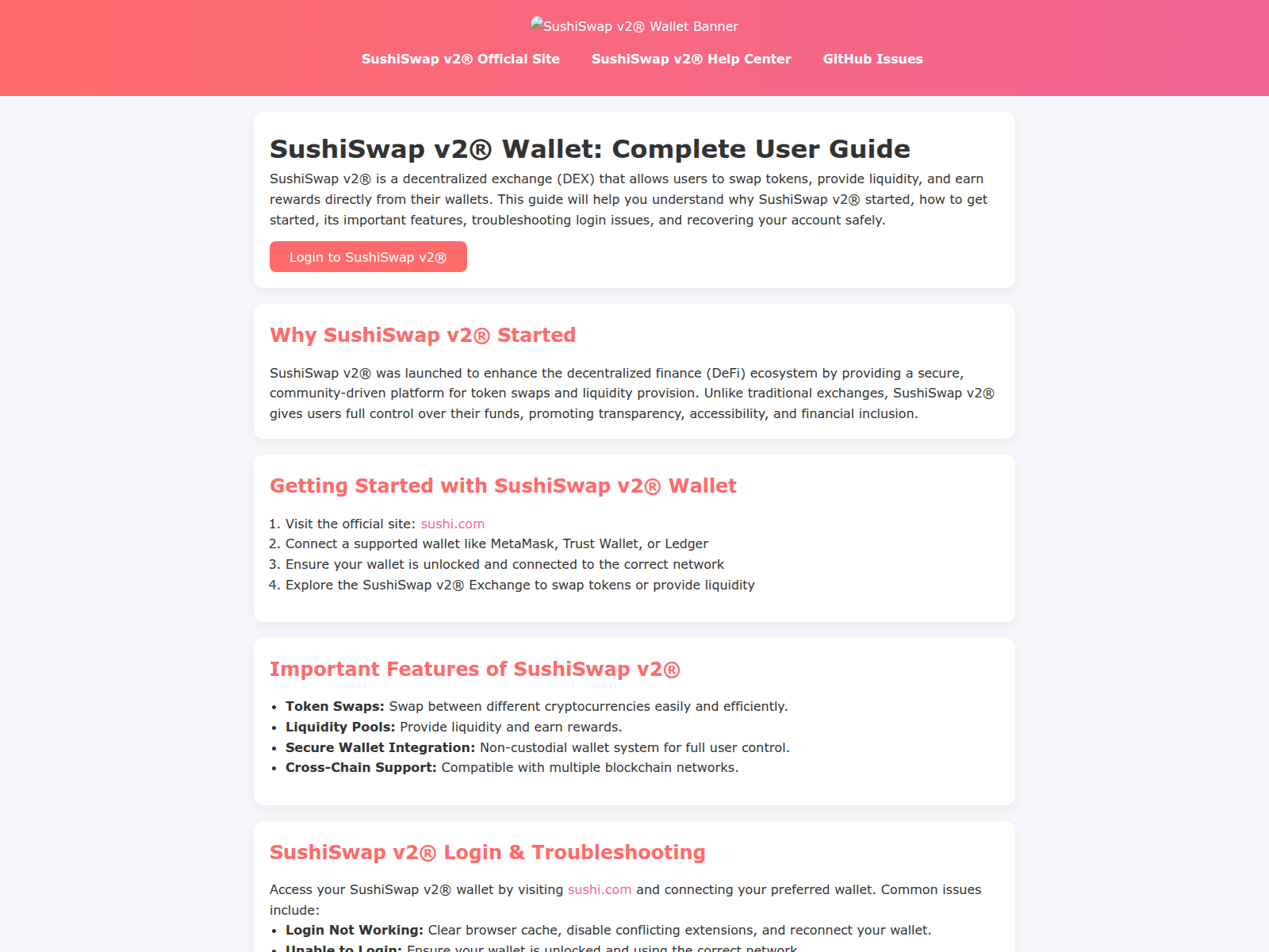 Domain Security & Threat Intelligence Report“SushiSwap v2® Wallet Guide: Getting Started, Login”
