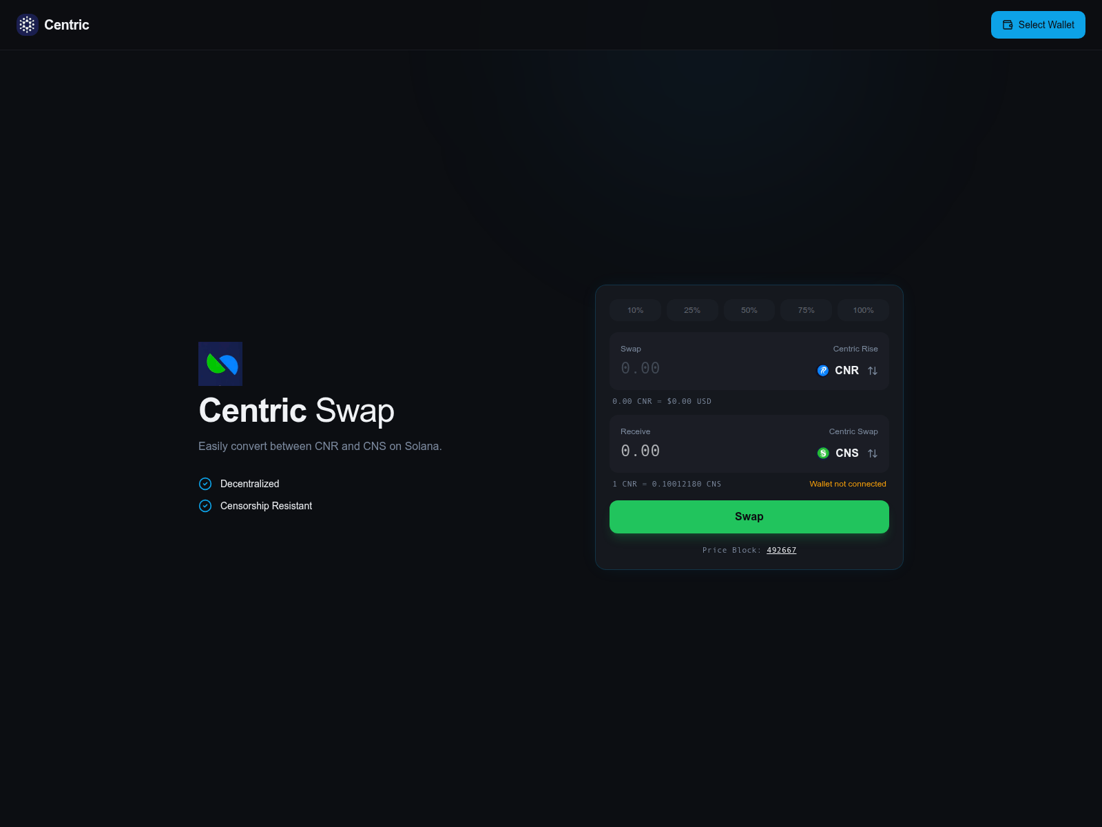 The site displays a page titled “centricswap”.