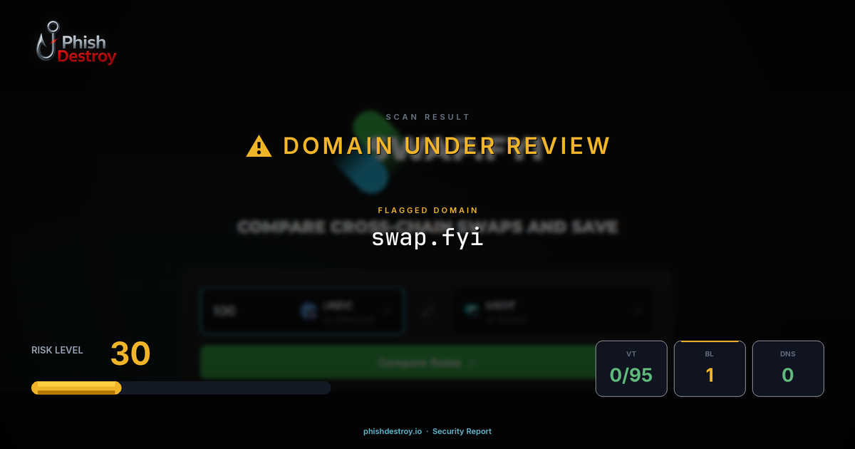 The domain swap[.]fyi has been identified as a cryptocurrency phishing website. This malicious site targets Web3 users by mimicking legitimate crypto platforms to steal wallet credentials and digital assets.