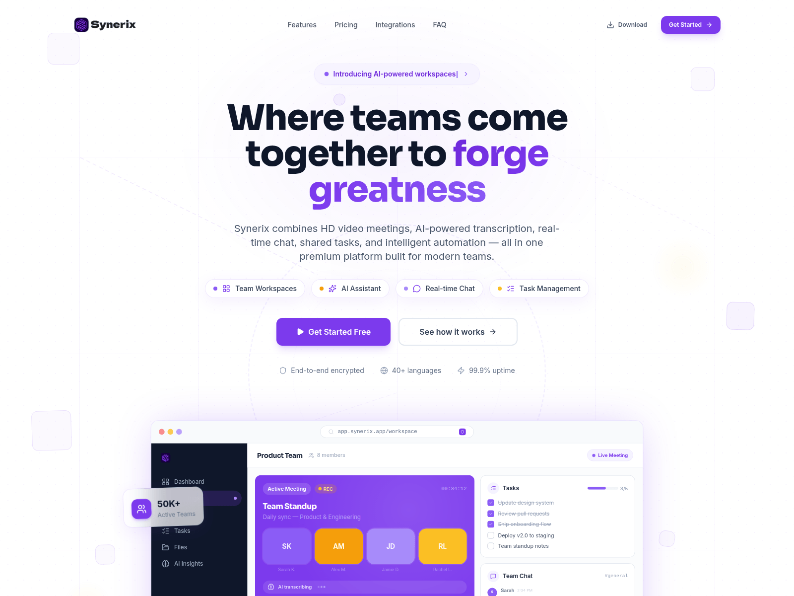 The site displays a page titled “Synerix - Forge Stronger Teams”.