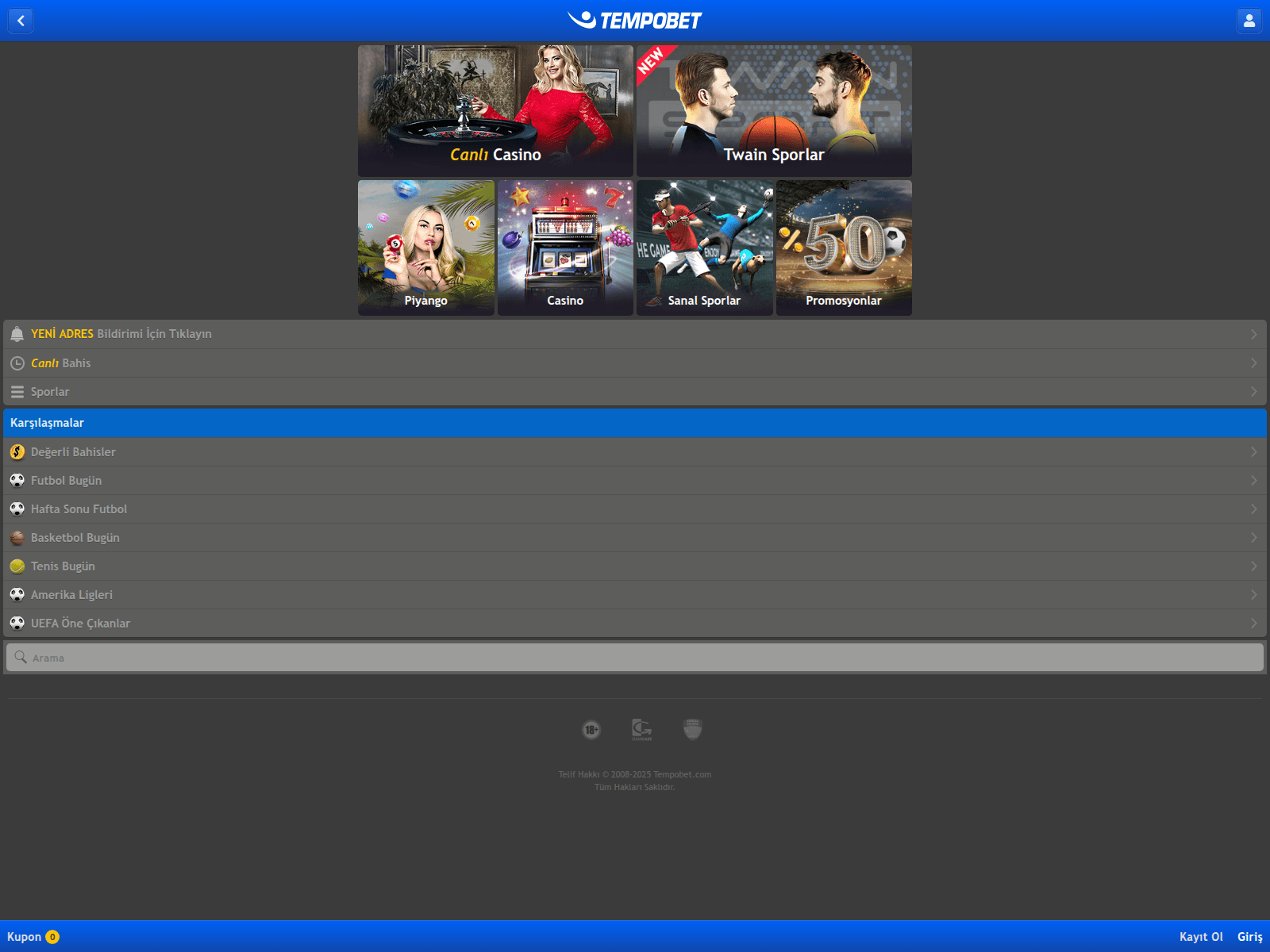 “En Yüksek Bahis Oranları, Canlı Bahisler ve Casino. Tempobet”