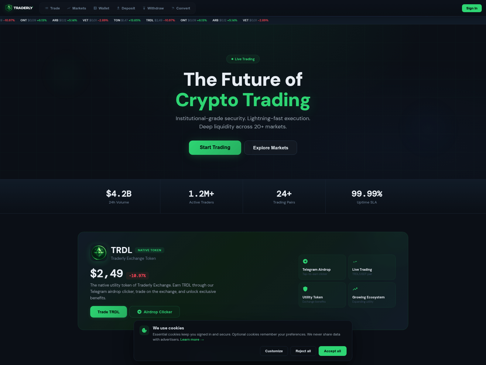 The site displays a page titled “Traderly Exchange”.