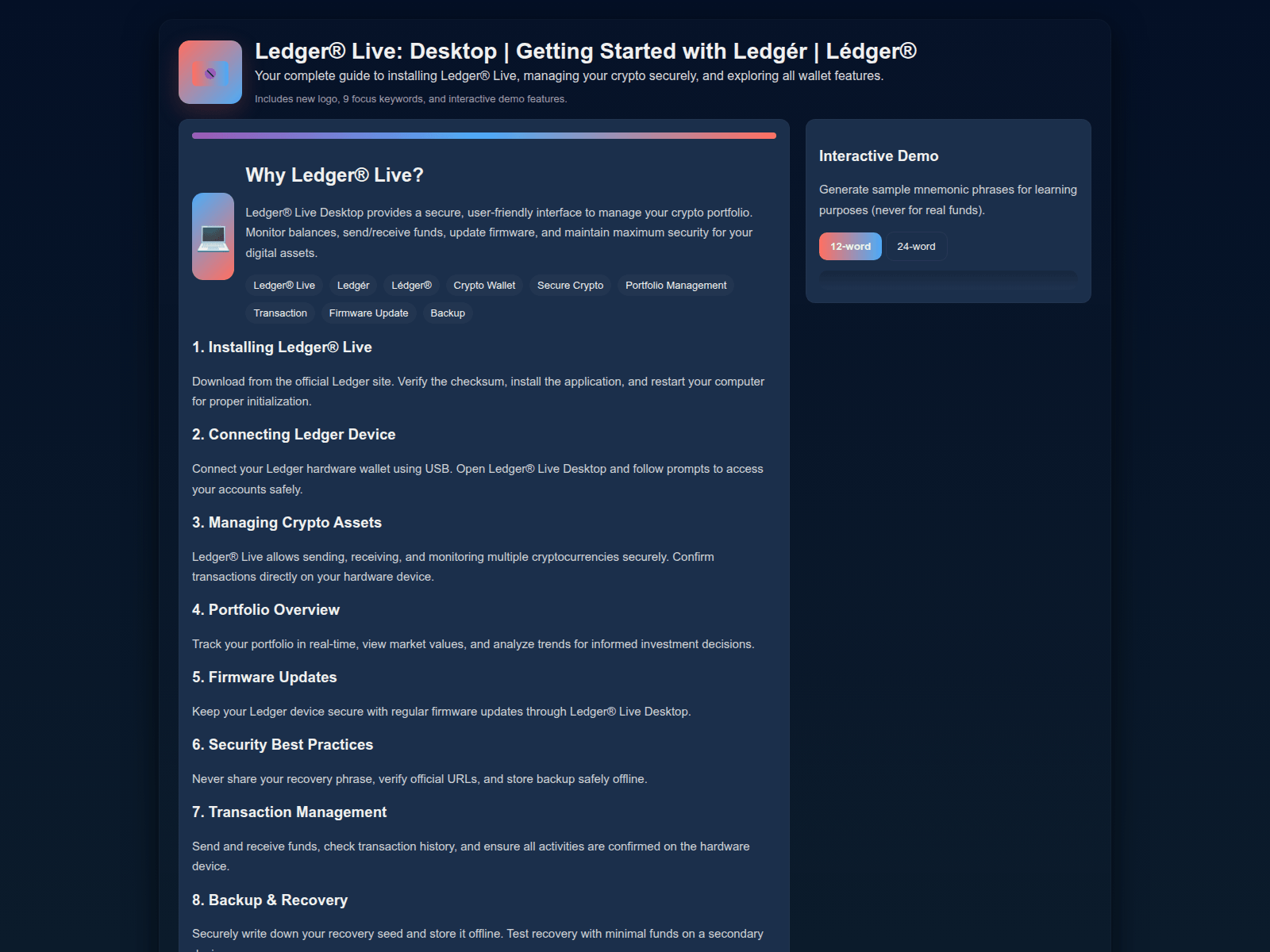 • Use a hardware wallet (Ledger, Trezor). Never store large amounts in browser wallets
