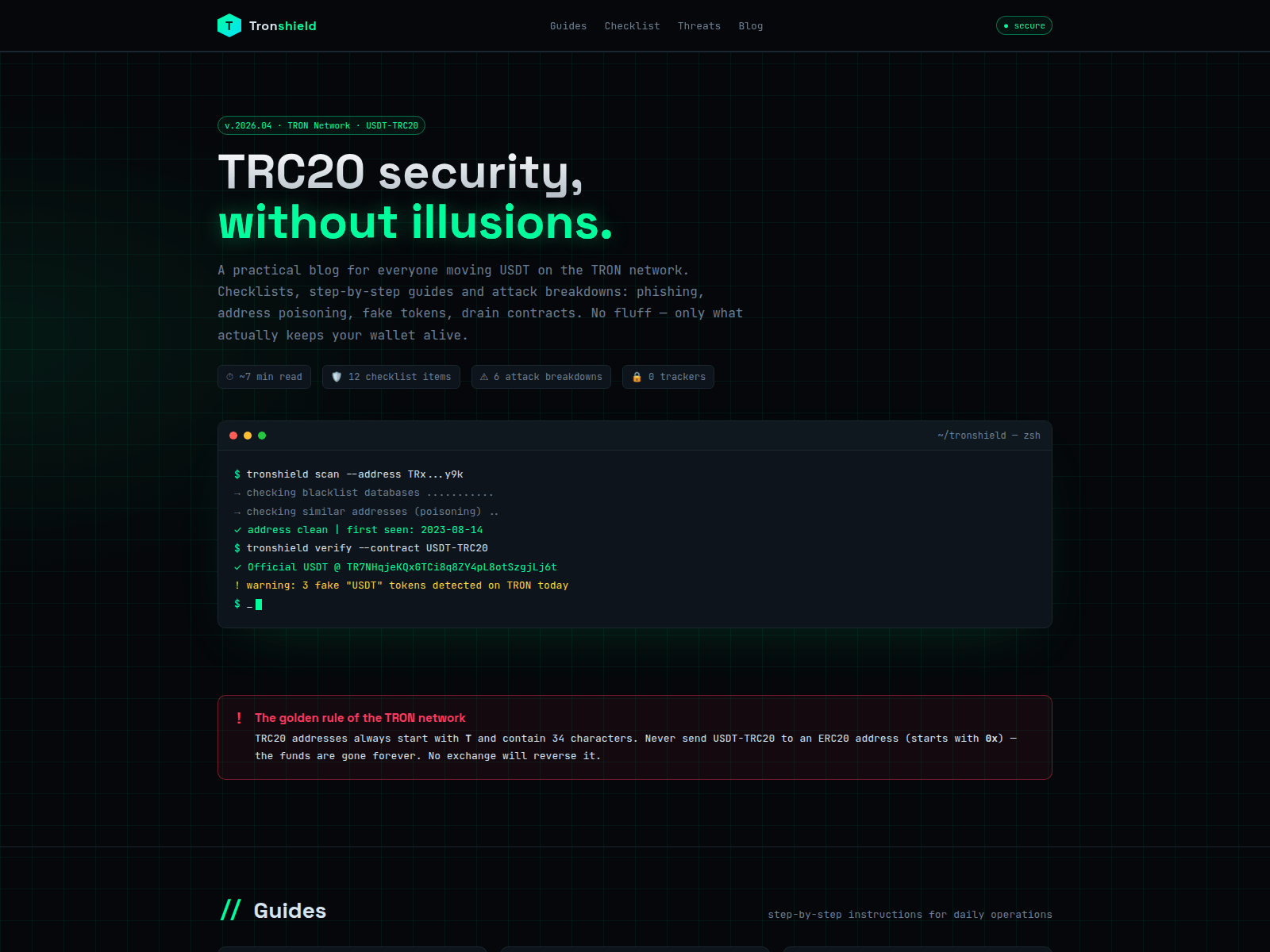 Domain Security & Threat Intelligence Report“Tronshield — TRC20 Security Guides & Checklists”