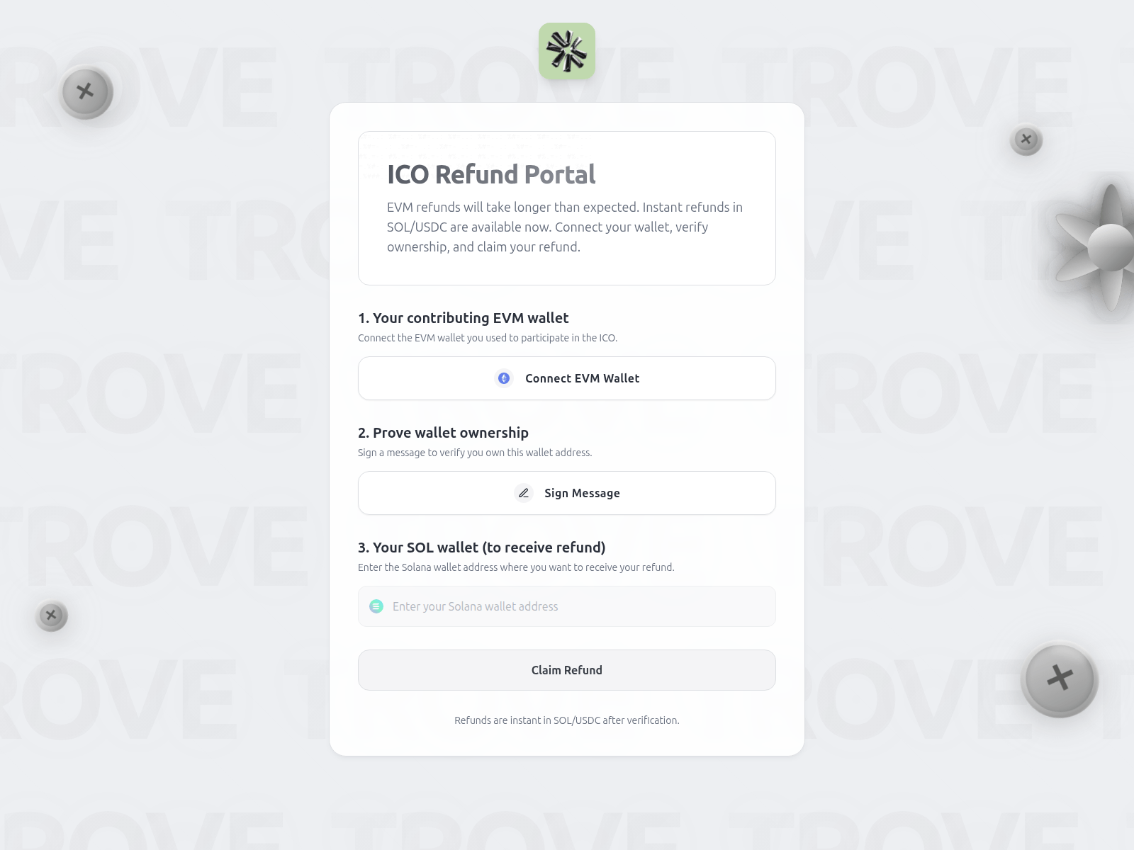 Users should avoid visiting trovemarkets[.]claims or providing any cryptocurrency wallet information or private keys. If you suspect you have interacted with this domain, immediately move your funds to a secure wallet and monitor for unauthorized transactions. Always verify the legitimacy of crypto-related refund or investment sites through official channels before engaging.