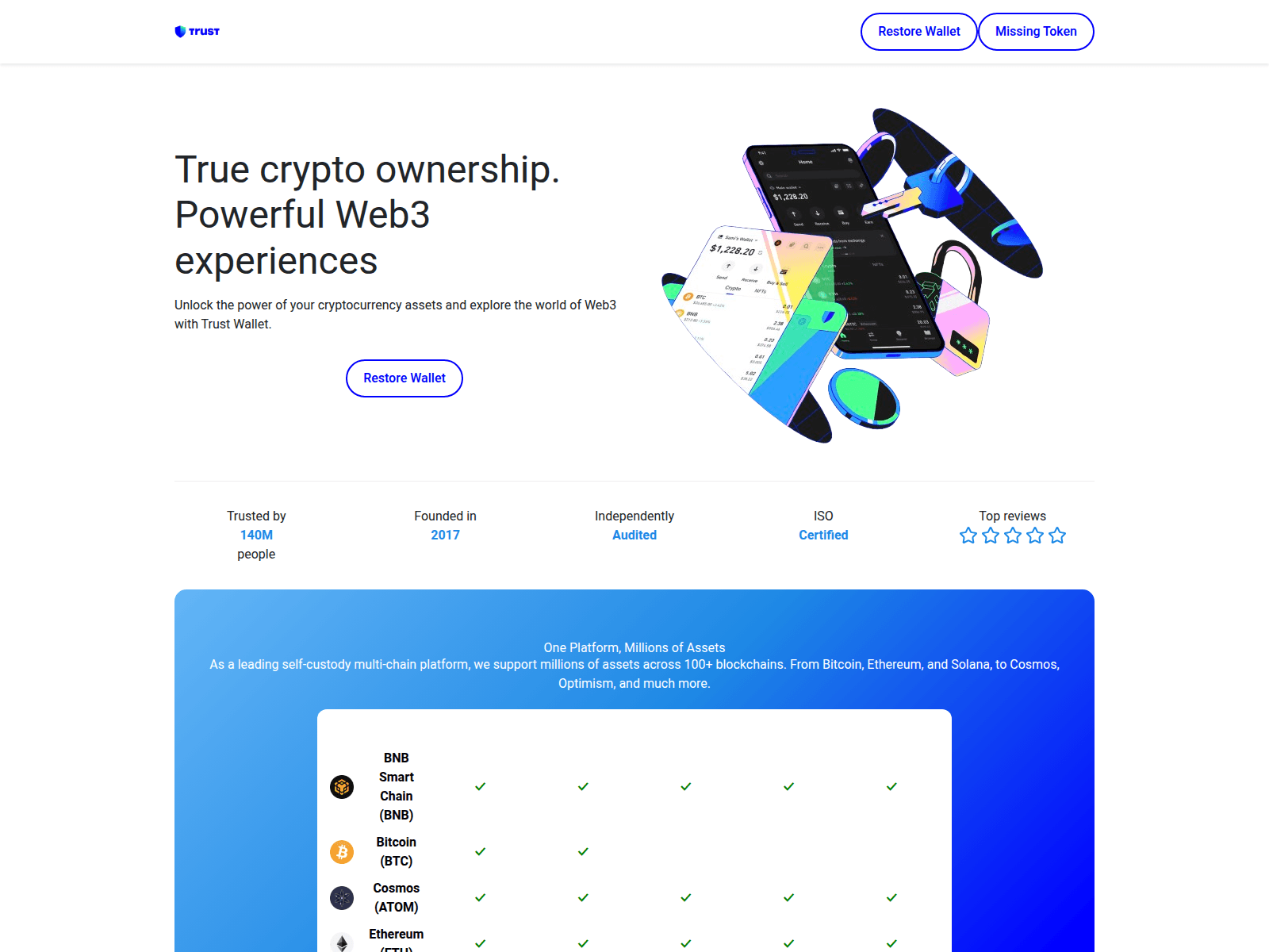 The site displays a page titled “Trust Wallet”, which may be designed to impersonate across.