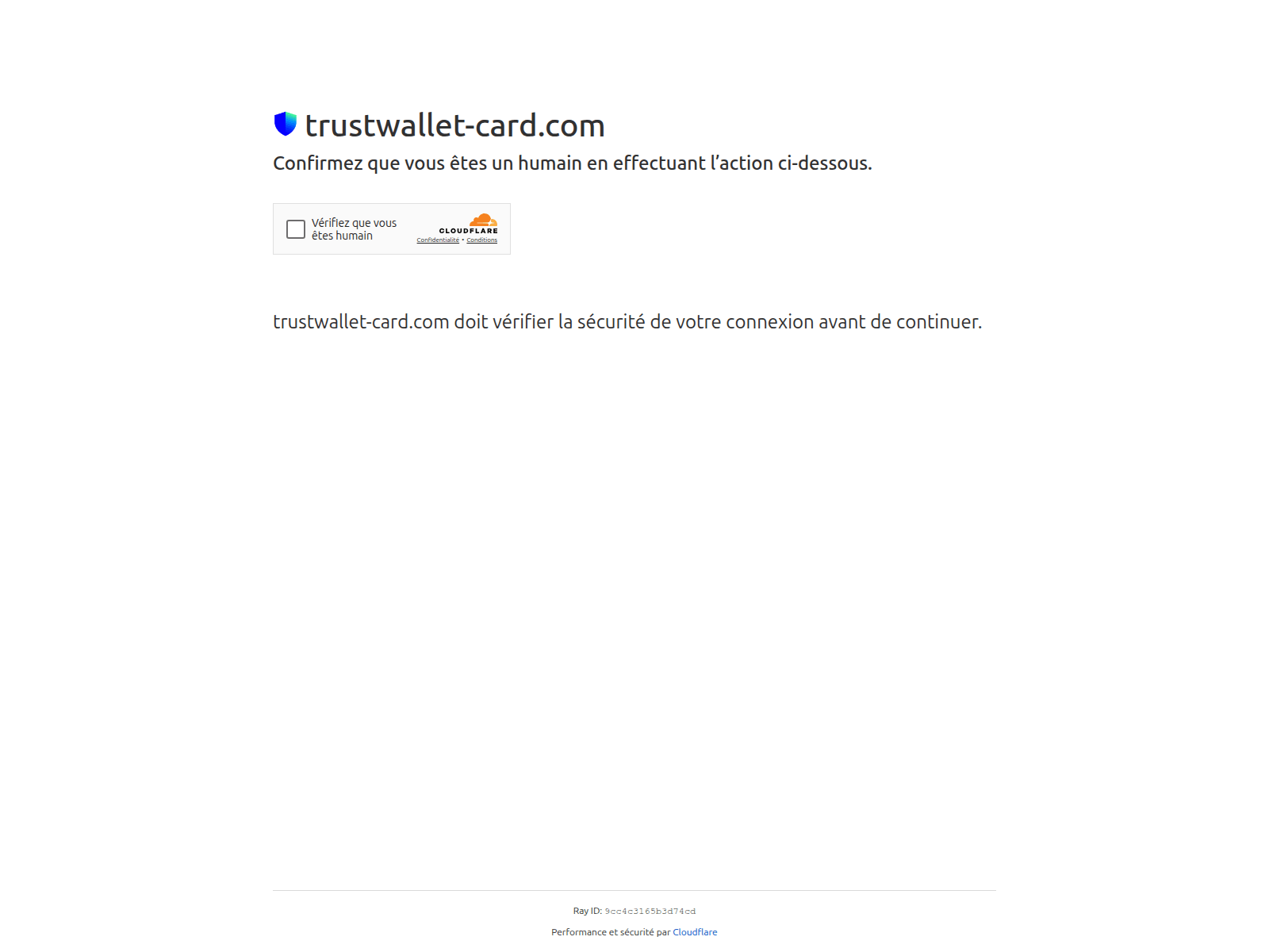 The site displays a page titled “Un instant…”, which may be designed to impersonate trustwallet.