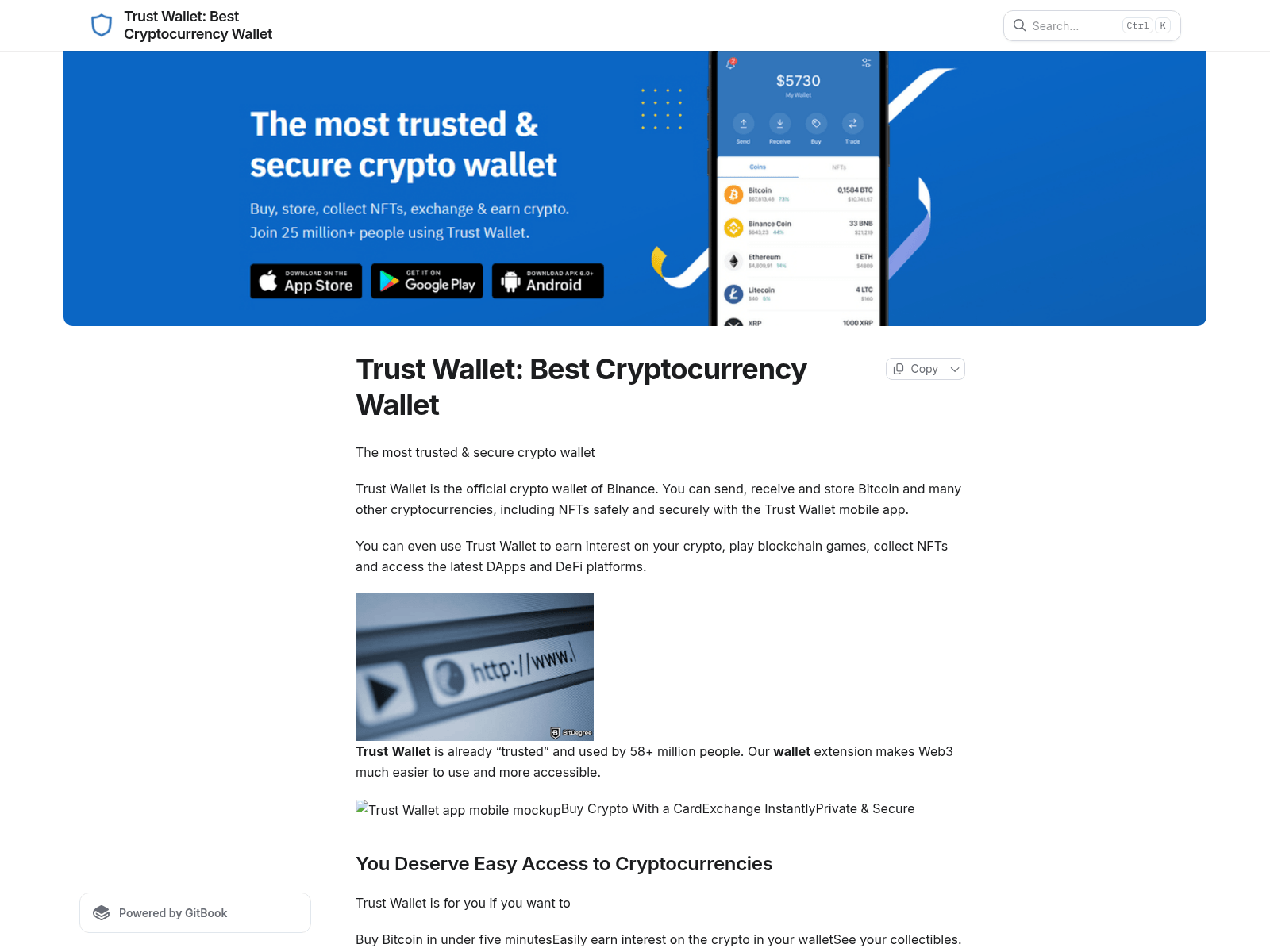 The site displays a page titled “Trust Wallet: Best Cryptocurrency Wallet”, which may be designed to impersonate Trust Wallet.