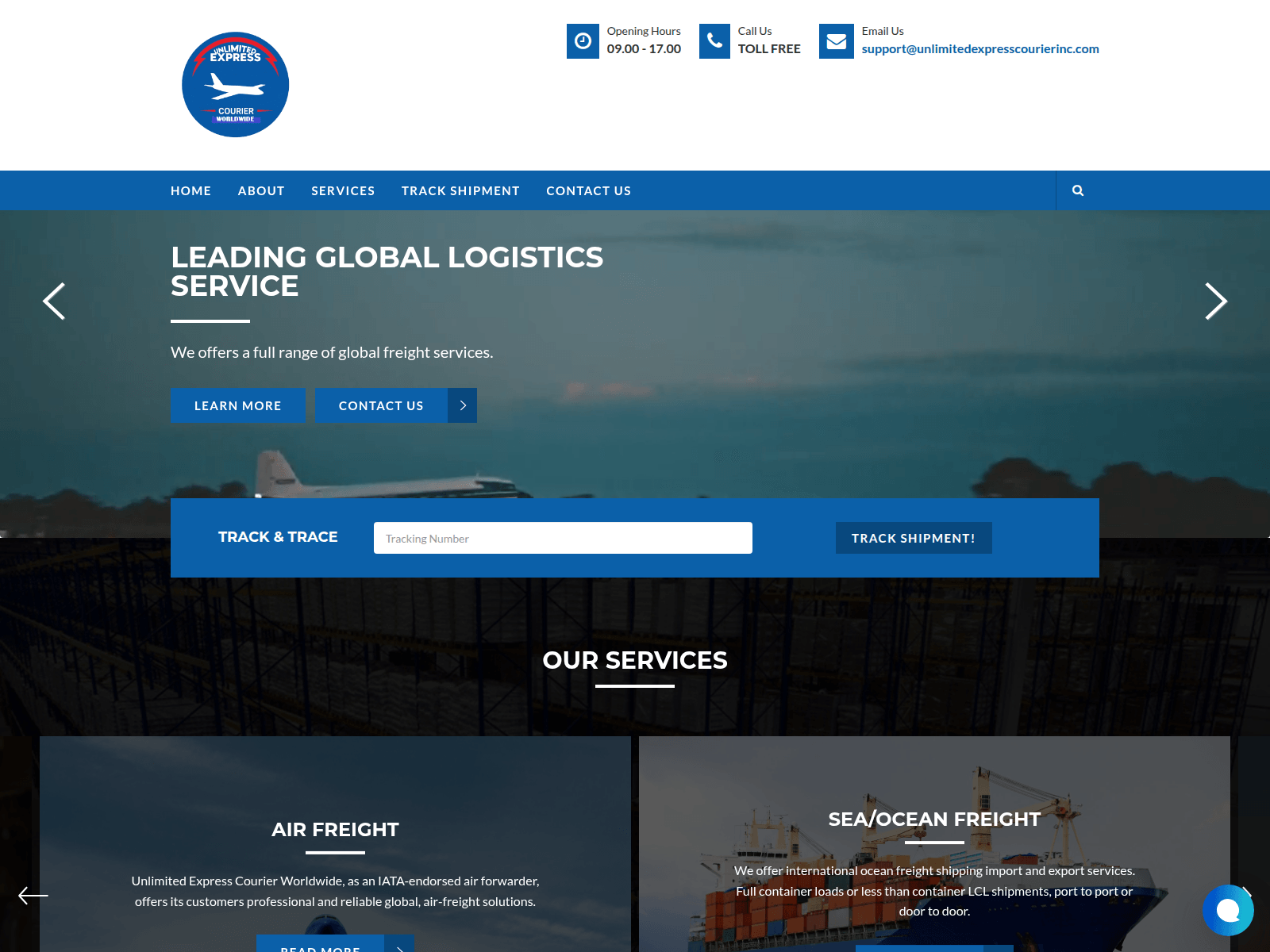The site displays a page titled “Welcome to Unlimited Express Courier Worldwide”, which may be designed to impersonate across.