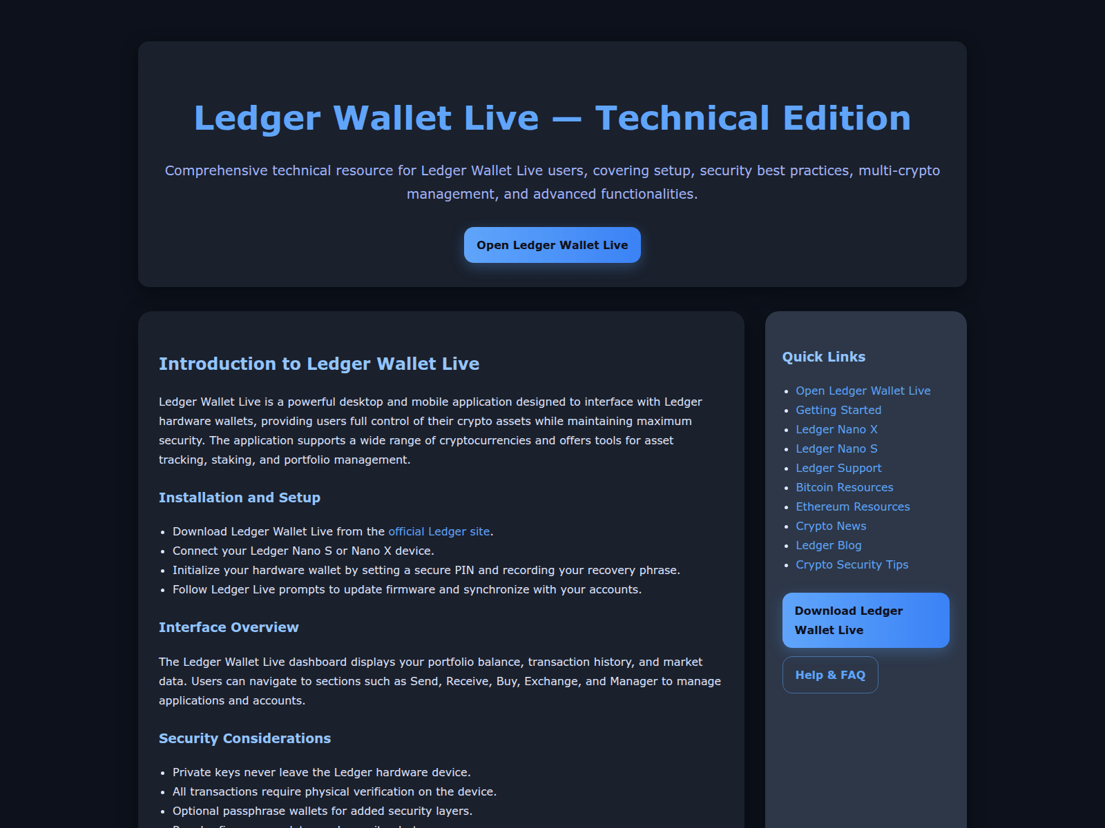 The site displays a page titled “Ledger Wallet Live — Technical Edition”, which may be designed to impersonate Ledger.